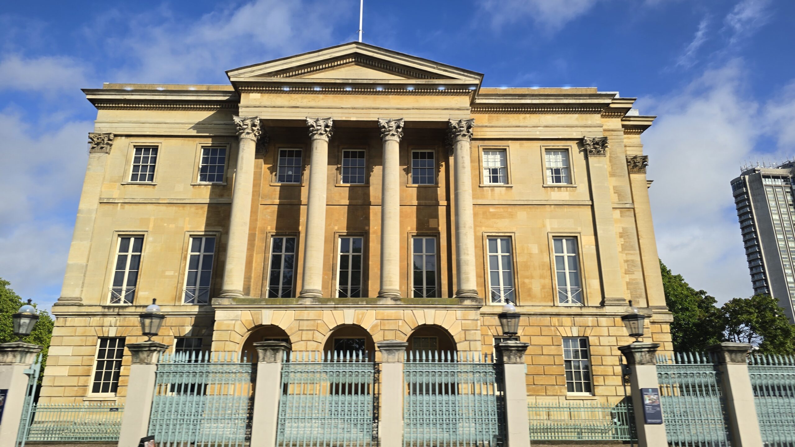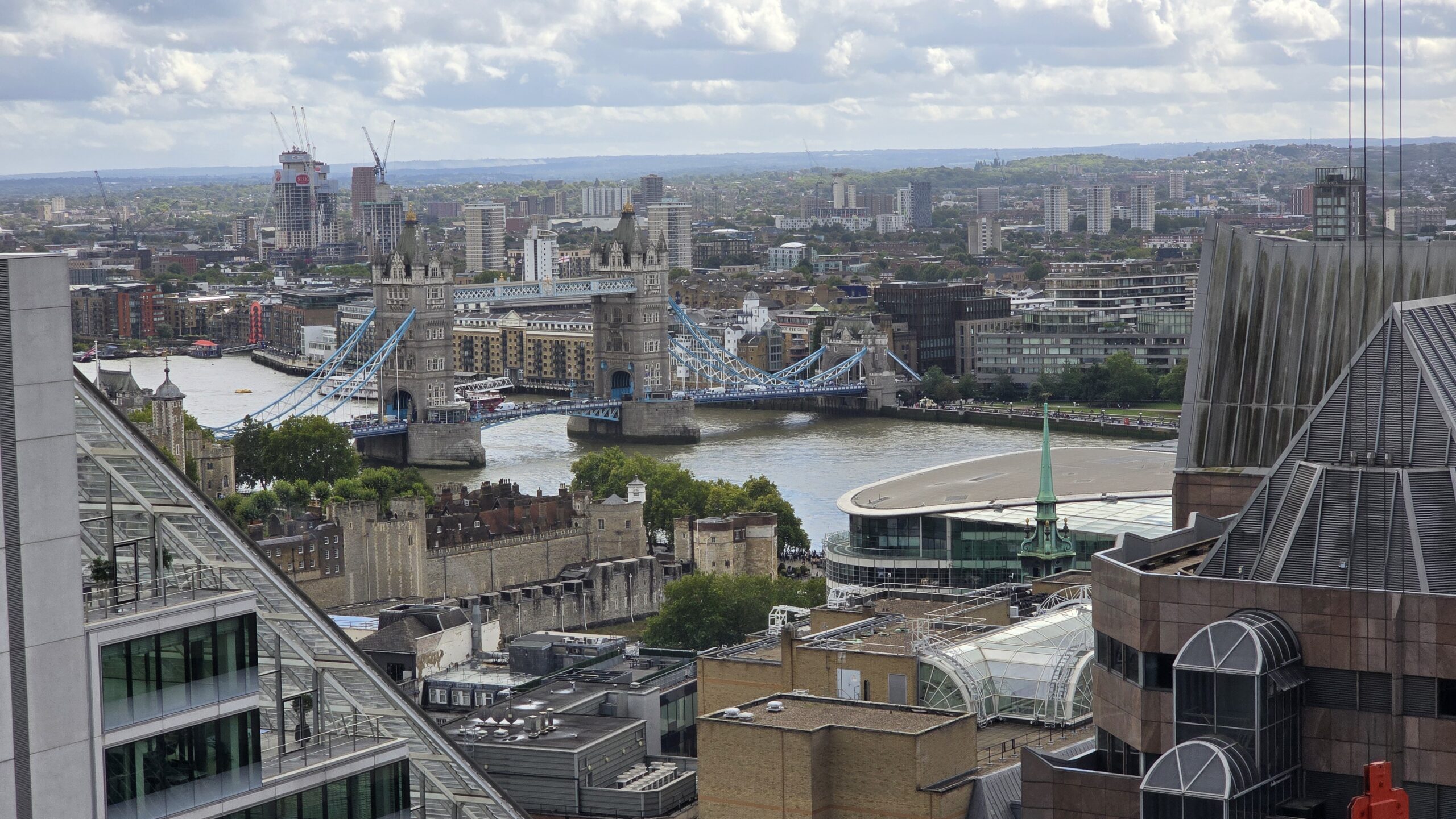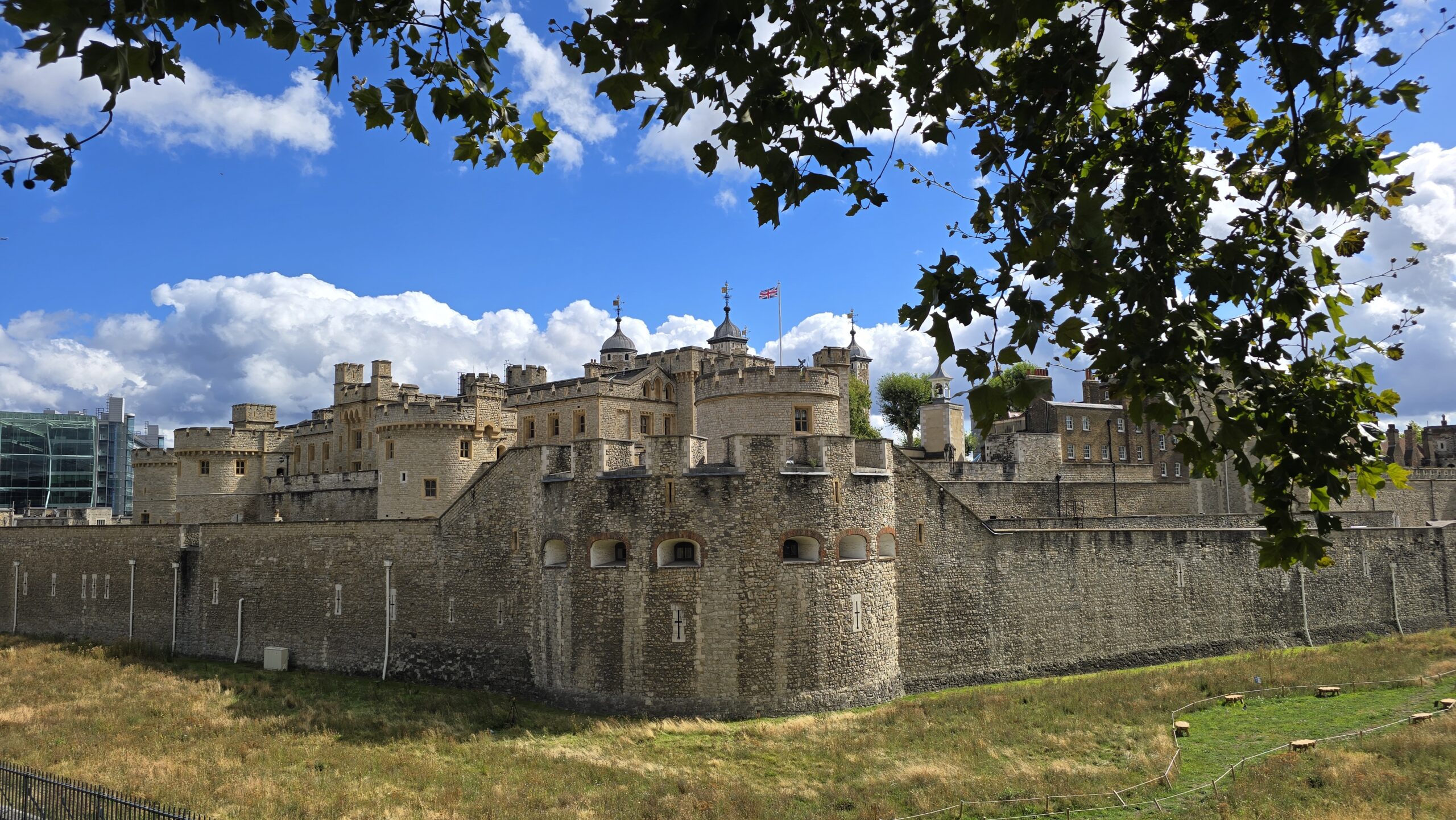 Nach einem Frühstück, das keine Wünsche offenließ, starten wir gut gelaunt und erwartungsfreudig in den Tag. Zuerst bekommen alle ihre Audio-Geräte und der Test verläuft positiv. Heike- unsere Stadtführerin- kommt zu uns in die Lobby und auch unser Bus ist rechtzeitig da. Es kann losgehen! Natürlich erst einmal durch Kensington, wir erhaschen einen kurzen Blick auf den Kensington Palast in den gleichnamigen Gärten, dann geht es an der Royal Albert Hall und dem Albert Memorial vorbei, dem Hyde Park und dem Wellington Arch. Am Buckingham Palast können wir aussteigen für Fotos- die werden heute gut, morgen sind ungleich mehr Menschen hier, also nutzen wir die Chance. Dann geht es ein Stück weiter die Themse entlang, dann über die Brücke ans Südufer. An der Albert Bank ist ein perfekter Platz, um die Houses of Parliament zu fotografieren- sie strahlen geradezu in der Morgensonne. Über die Westminster Bridge geht es zurück auf die Nordseite und durch das Regierungsviertel Whitehall zur City of London- und jetzt beginnt es auch zu regnen- gut, dass wir im Bus sitzen. Pünktlich zum Aussteigen in der nähe der St. Pauls Kathedrale hört es wieder auf. Gutes Timing! Wer mag folgt mir in den Reflexion Garden für tolle Fotos von der Kuppel der St. Pauls Kathedrale, dann geht es hinauf auf den Dachgarten des Einkaufszentrum New Change One. WOW! Was für ein Ausblick, auch wenn noch einige dunkle Wolken das Bild trüben- es wird immer besser. Ich nutze die Gelegenheit und erstehe für alle ein paar Kleinigkeiten gegen den Hunger zwischendurch. Weiter geht unsere Fahrt- wieder auf die Südseite der Themse denn wir wollen auf jeden Fall über die Tower Bridge fahren. Ein absolut ikonisches Bauwerk. Am Tower of London geht es vorbei und dann verabschieden wir uns schon von Heike und unserem Fahrer.