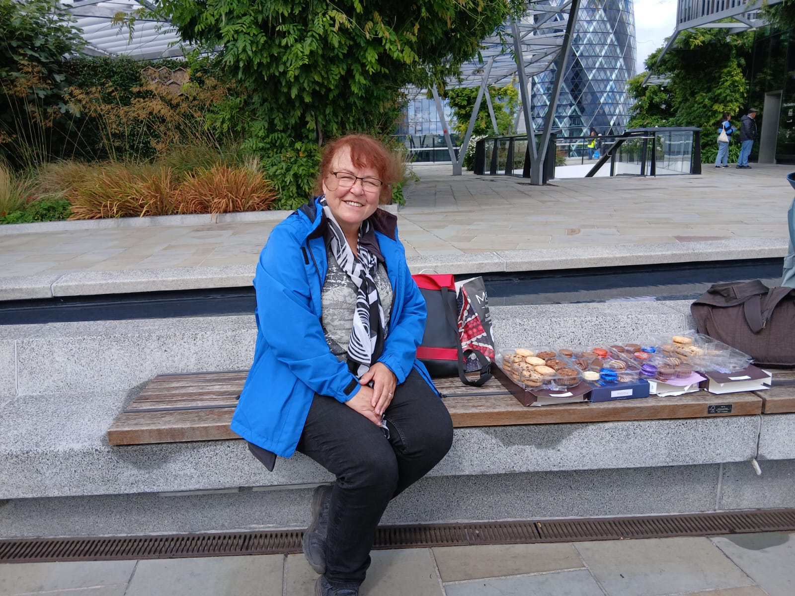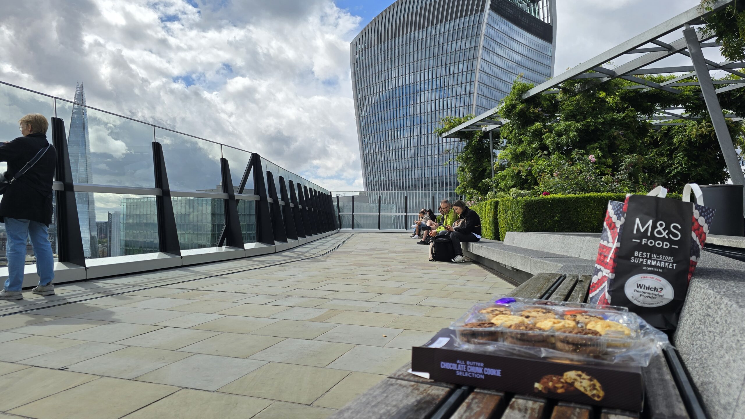 Es ist Mittag, wer mag verabschiedet sich in die Lunch-Pause, andere folgen mir zu einem Spaziergang zu einem besonderen Dachgarten: The Garden at 120, mitten im Finanzzentrum gelegen und trotzdem keine 15 Minuten vom Tower. Ein kleiner Snack tut gut und alle genießen die Aussicht, die Wolken verziehen sich mehr und mehr und machen Platz für die Sonne.