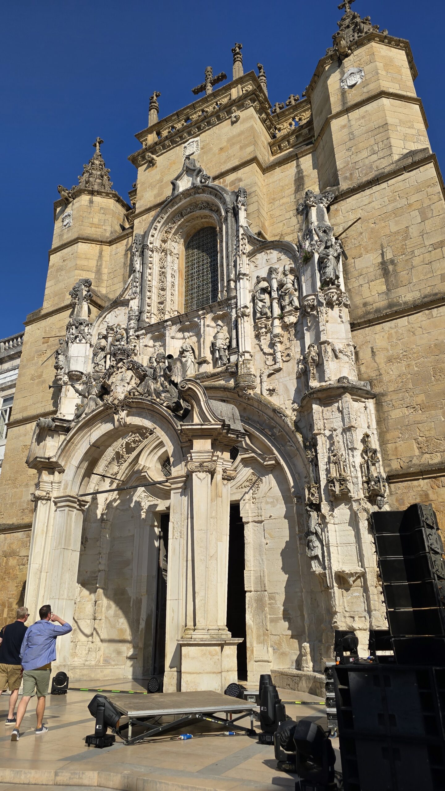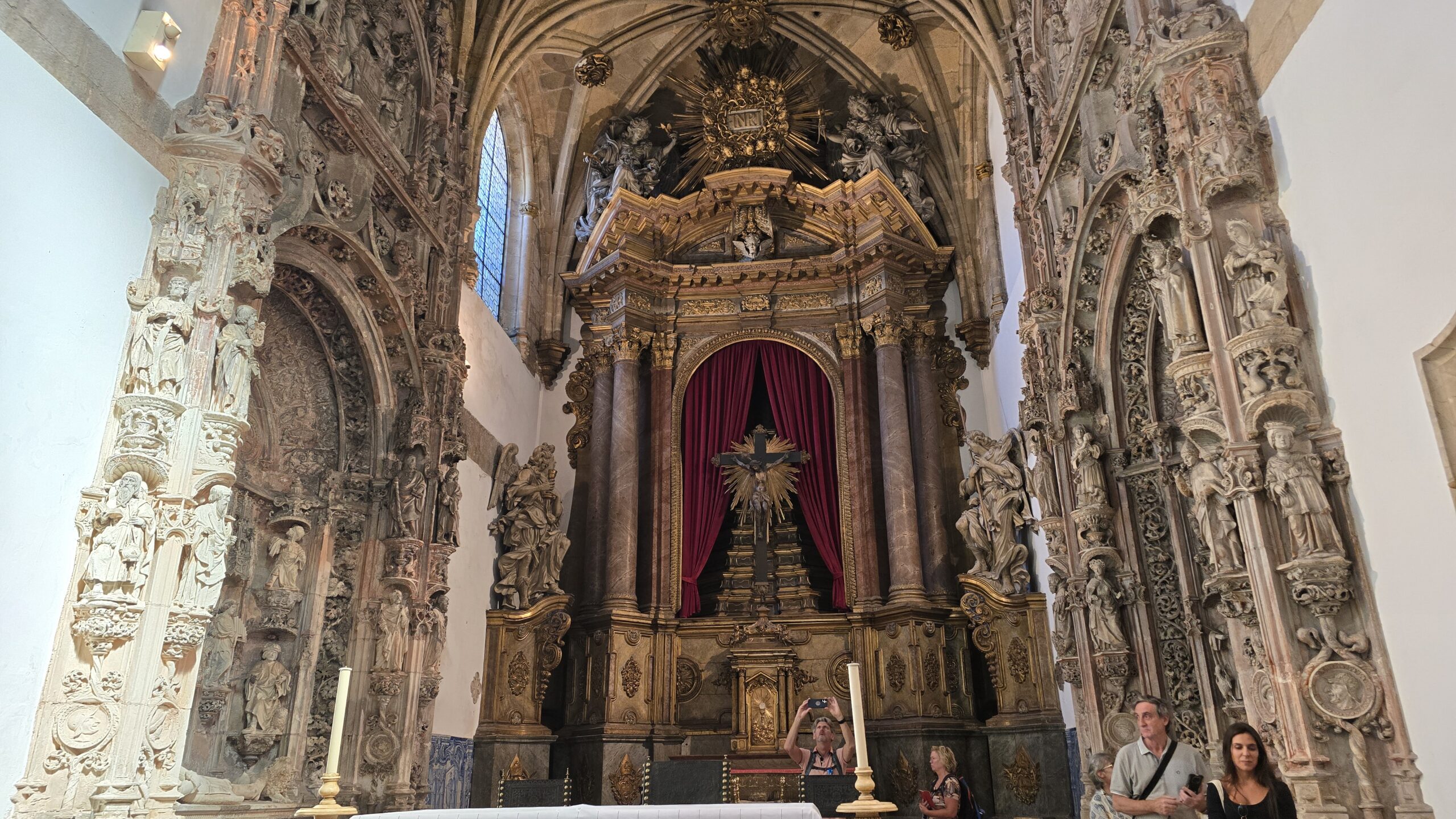 Es wurde gestiftet von Joao I. für seinen Sieg über Kastillien 1385. Das klingt simpel, was uns erwartet ist aber alles andere als das: Ein überragend schöner Gebäudekomplex der Hochgotik. Wir sind beeindruckt und schauen uns gemeinsam die Kirche, die Grabstätten der Könige, den Kreuzgang und natürlich den scheinbar unvollendeten Anbau an. Im Kreuzgang ist auch ein Denkmal für den unbekannten Soldaten. Bau und Ausstattung hier sind überragend und natürlich begegnet uns auch wieder der manuelinische Baustil mit seinen Schiffstauen. Dass die Kapelle mit Absicht nicht weiter gebaut wurde erklärt sich mit dem dann fehlenden Licht in der Kirche. Ich erstehe noch einige typisch portugiesische Süßigkeiten und erwarte die Gäste am Bus mit dieser kleinen Stärkung.