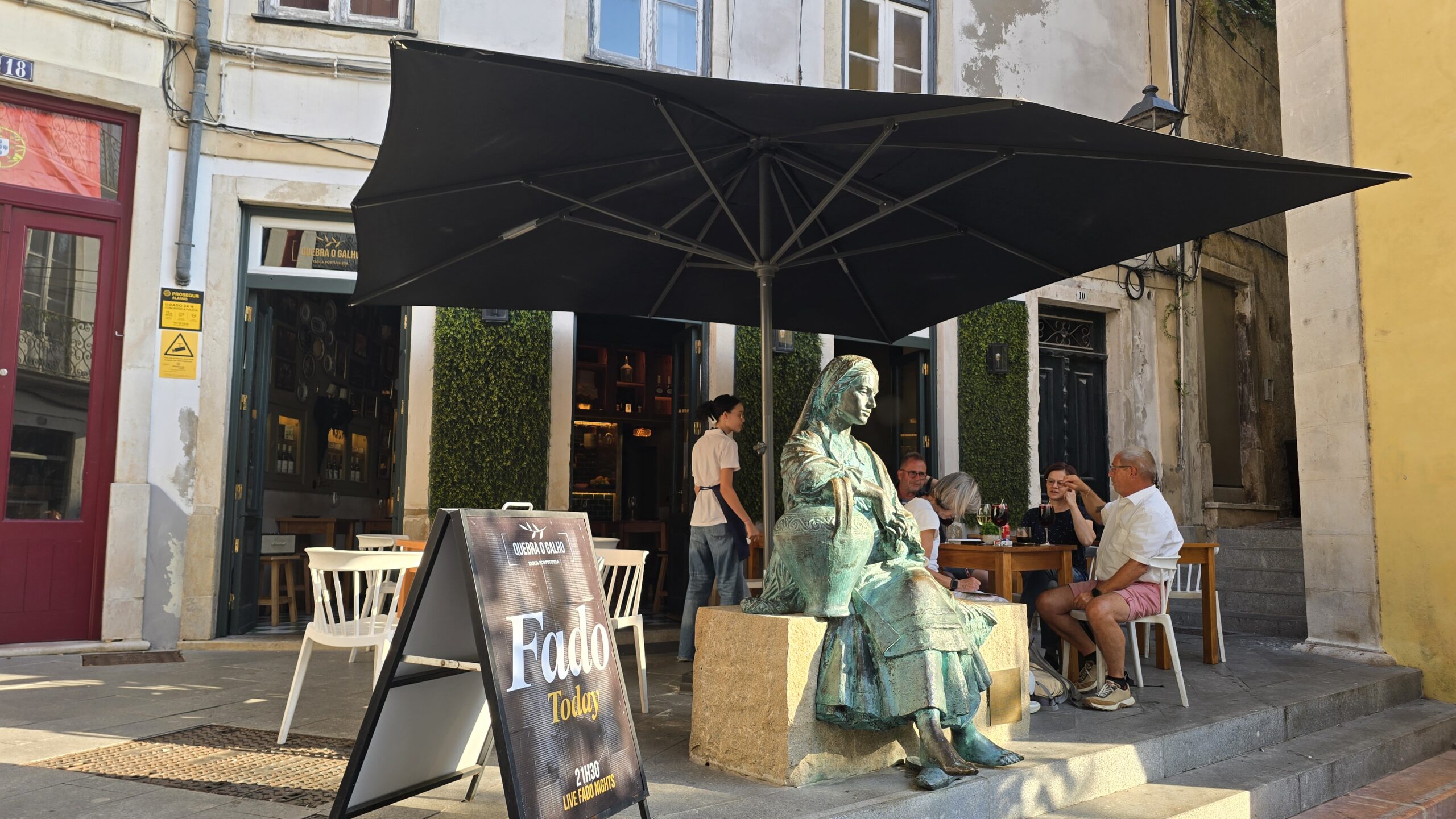 Dann bringt uns Carla über etliche Umleitungen zum Platz der Erneuerung, einige Gäste besuchen eine Fado-Veranstaltung, andere bleiben noch in der Stadt, alle anderen fahren ins Hotel zurück. Wer zum Fado möchte spaziert mit Luis und mir durch die Gassen, vorbei an der besten Handschuh- Manufaktur, dem Luvaria Ulysses, wir passieren den Fahrstuhl, der Ober- und Unterstadt miteinander verbindet- allerdings seit dem tragischen Unfall der Seilbahn ebenfalls vorerst stillgelegt wurde. Wir besuchen A Vida Portuguesa, ein wunderschöner Laden, in dem die Zeit still zu stehen scheint. Hier entdecke ich Mandelpralines- perfekt für unseren Wein gleich beim