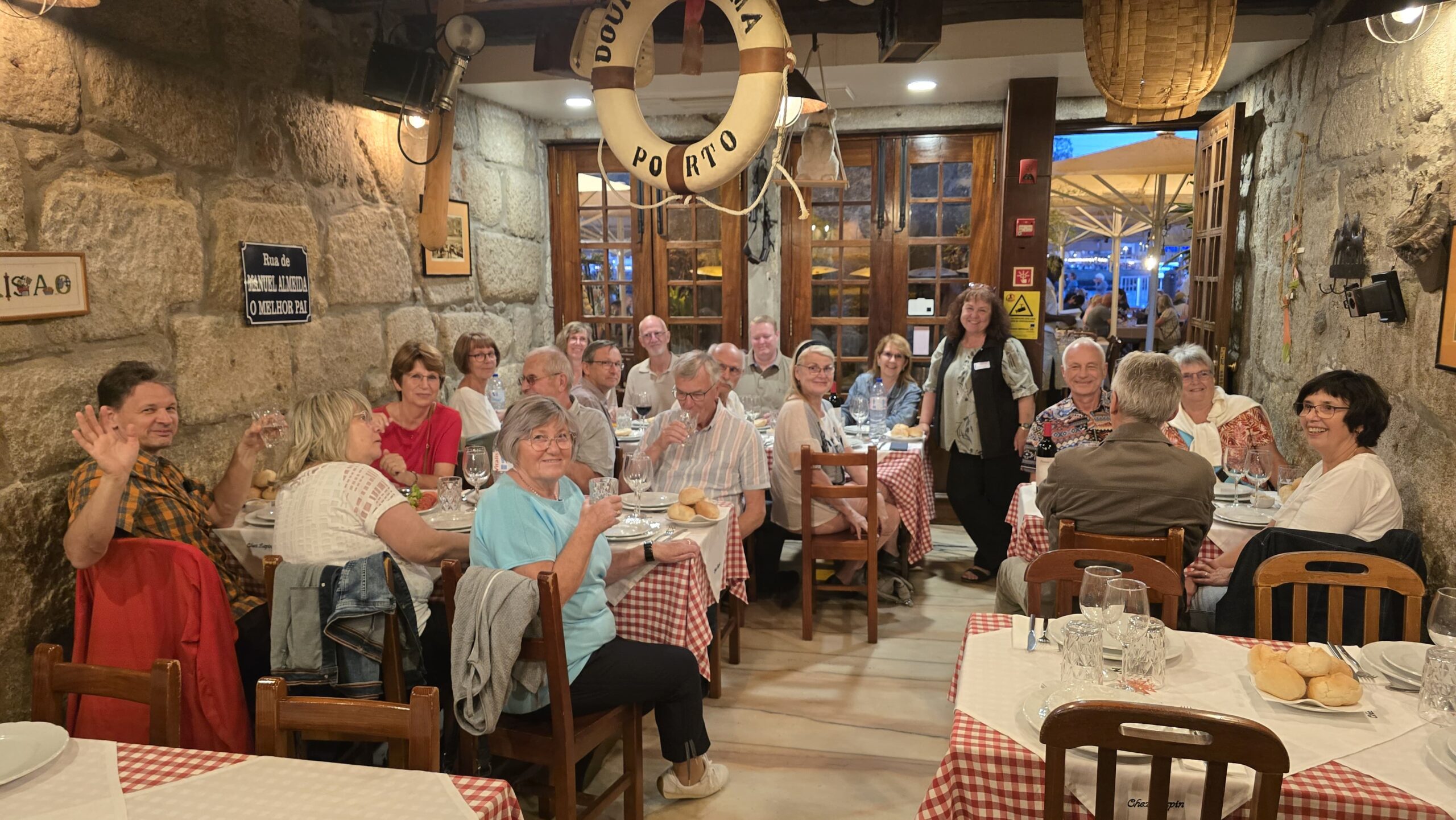 Wir starten in Leipzig, Dresden, Frankfurt und München. Pünktlich kommen alle wohlbehalten in Porto an, nur ein Koffer nicht, der ist so kaputt, dass wir den Schaden melden müssen und dann geht es erst weiter. Transfers bringen uns zum Hotel und einige Gäste haben schon Zeit, sich in der Stadt umzuschauen. Die Frankfurter Gruppe wird von Luis, unserem Guide, herzlich begrüßt und dann geht es zum Hotel. Die Straßen sind Gott sei Dank noch frei, heute spielt der FC Porto gegen Benfica Lissabon und am Stadion müssen wir vorbei. Aber es ist noch genügend Zeit und so erreichen wir ohne Stau unser Hotel. Wir checken ein und treffen uns kurz vor dem Abendessen wieder. Mit einem Porto- Tonic stoßen wir auf unsere gemeinsame Reise an und dann lassen wir uns das Abendessen schmecken. Beim Essen lernen wir uns kennen und erzählen von ersten Erlebnissen in der Stadt.