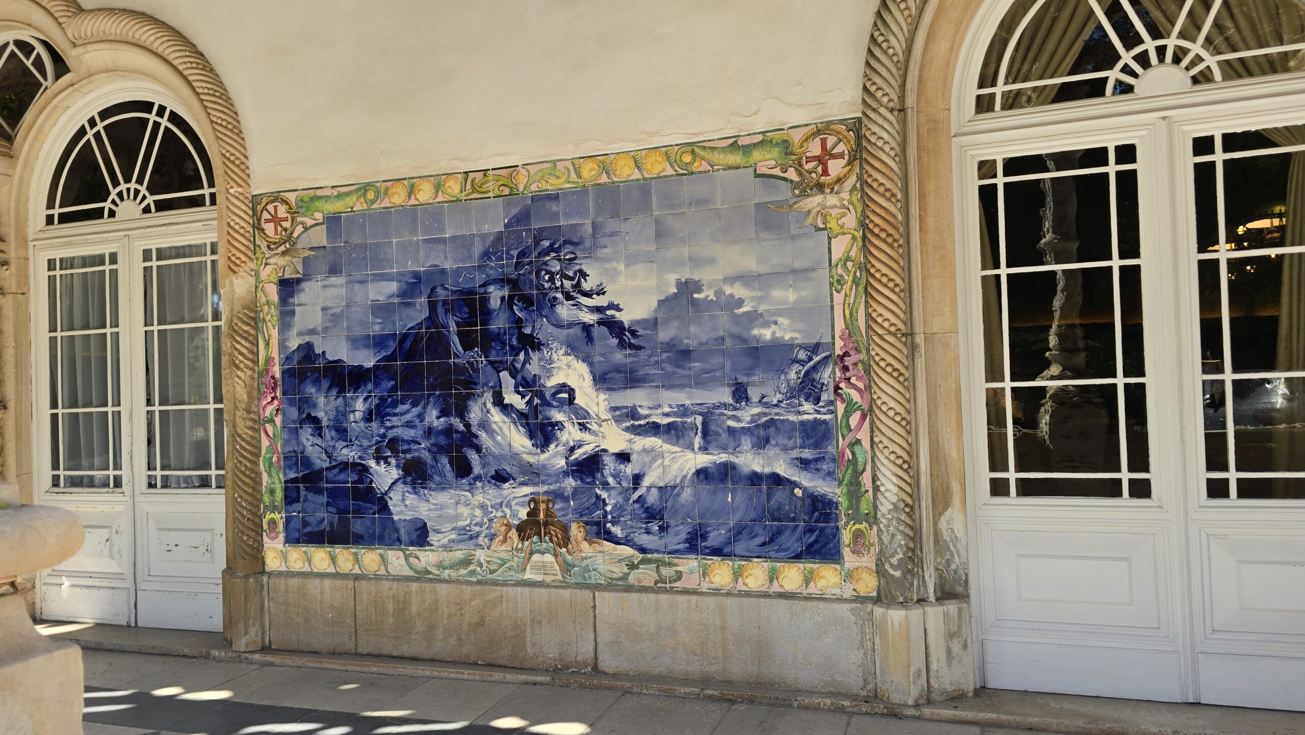 ist unser Ziel, die Sommerresidenz der Könige. Bis zum 11. Jahrhundert waren die Mauren hier- ihre Festung thront heute noch hoch über der Stadt. König Alfonso Henriques eroberte Sintra 1147, verlieh dem Ort Stadtrechte und mit den Klöstern des 12. und 13. Jahrhunderts wuchs auch die Stadt und wurde von den portugiesischen Königen wegen des kühleren Klimas hier geliebt und geschätzt. Der Adel zog mit und errichtete hier wundervolle Anwesen und Herrenhäuser, doch die konnten wir später bewundern. Zunächst wollten wir den Nationalpalast besichtigen. König João I. ließ ihn nach den Zerstörungen durch das Erdbeben 1755 wiederaufbauen und unter Manuel I. erhielt der Palast einen weiteren Flügel und sein heutiges Gesicht. Luis besorgte unsere Tickets und dann konnten wir unsere Entdeckungsreise starten. Und es gab tatsächlich so viel zu entdecken, Möbel aus der Handelszeit mit Indien, eine Pagode aus Elfenbein, manuelinische Gestaltungselemente, den Elster- und den Schwanensaal, und überall die wunderschönen Azulejos. Luis erzählte uns die Geschichten zu den Elstern, dem Prunksaal und erläuterte uns die verschiedenen Azulejos, aus maurischer Zeit und danach. Auch die Küche war von unten bis oben mit weißen Azulejos verkleidet, hier erheben sich die riesigen, 33 Meter hohen Schlote, so konnte an allen Feuerstellen gleichzeitig gekocht und gebrutzelt werden und es blieb doch relativ kühl. Beeindruckend auch die Innenhöfe, der Badegarten…Mit vielen Fotos und Eindrücken ging es weiter in das Stadtzentrum von Sintra. Hier konnten wir uns nach Herzenslust umsehen, dem bunten Treiben zusehen und einen Kaffee genießen. Am Bus trafen wir uns wieder und hier gab es wieder eine portugiesische Köstlichkeit für alle zum Probieren: Piriquitas. Soo lecker!