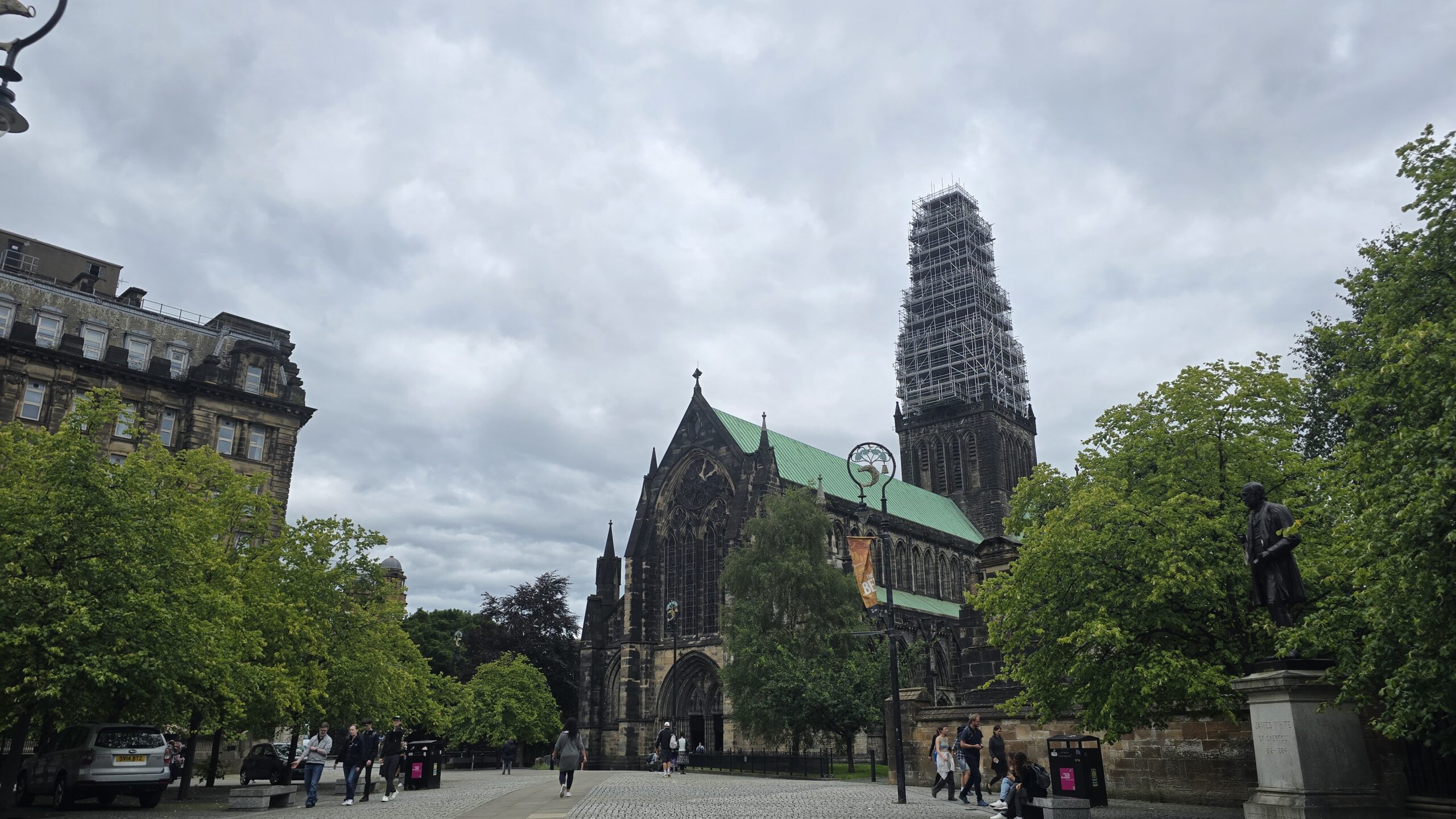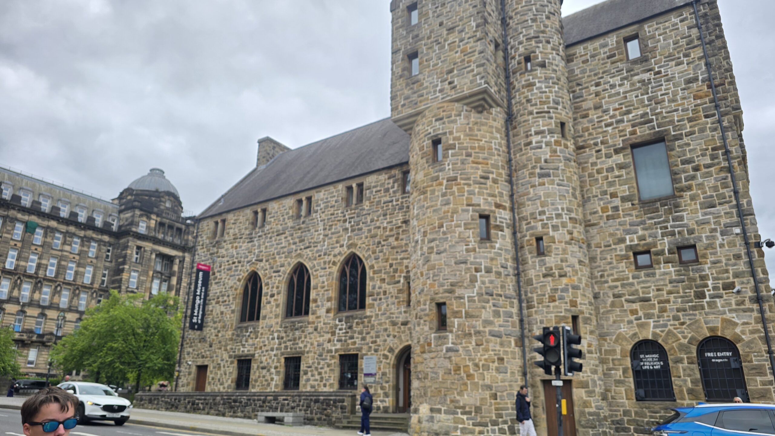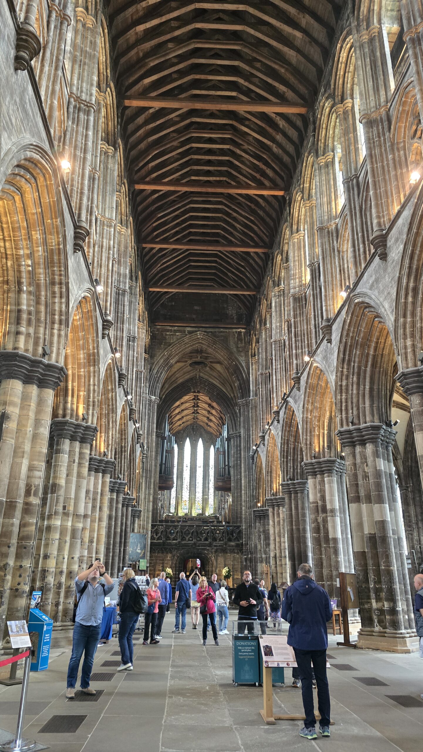 Ihn und die bereits angereisten Gäste treffen wir an der Kathedrale und schon sind wir mitten in Schottlands Geschichte. Als eine der wenigen katholischen Kirchen hat sie die wütenden Zerstörungen während der Reformation überlebt und zeigt sich in voller Pracht. Wir haben Zeit für einen Rundgang und auch für die Nekropolis über der Kathedrale. Im Bus geht es dann zum George Square mit seinem imposanten Rathaus, an der lebhaften Buchanan Street vorbei zum Clyde. Hier stehen das Armadillo und das Ufo- zwei Gebäude für Messen und Events, u.a, von Sir Norman Foster entworfen. Am Kelvingrove Gallery and Art Museum steigen wir wieder aus und können einen Blick hinein werfen.