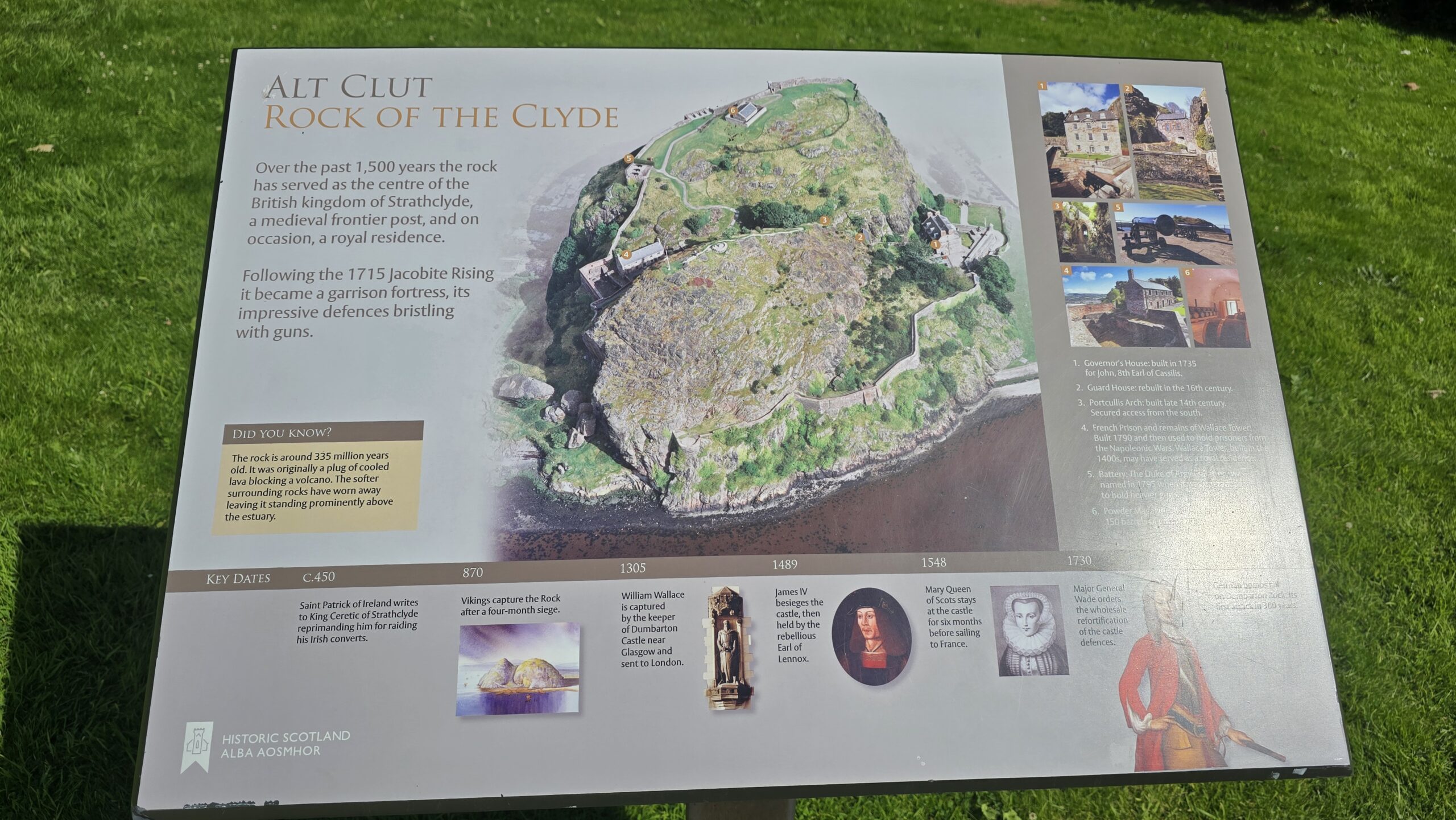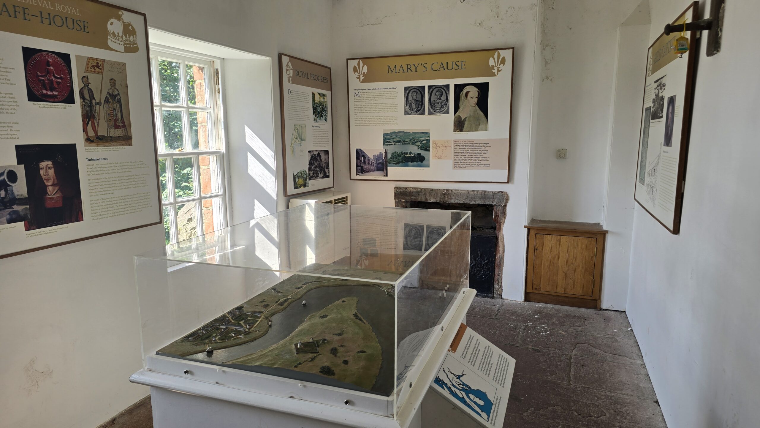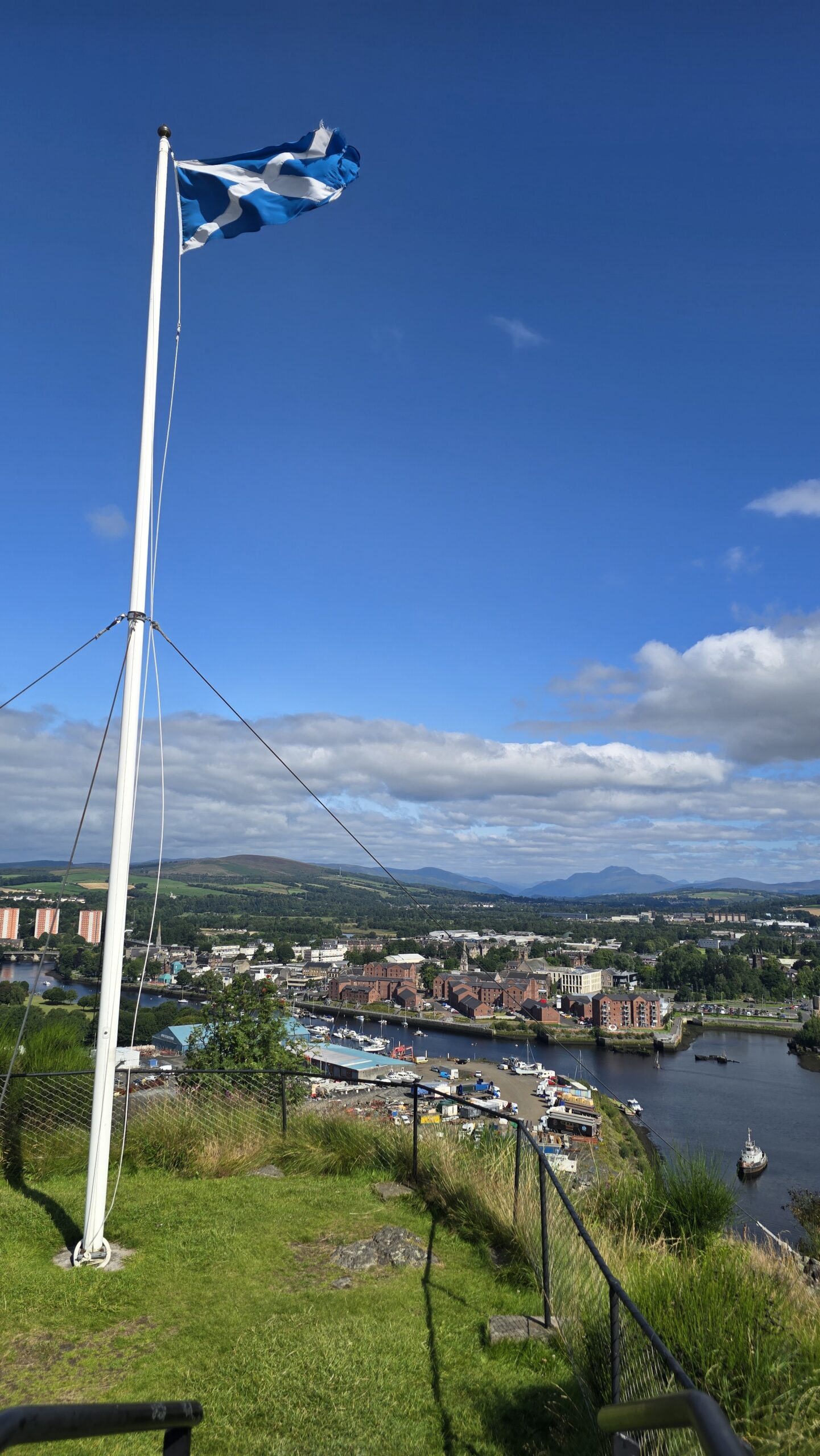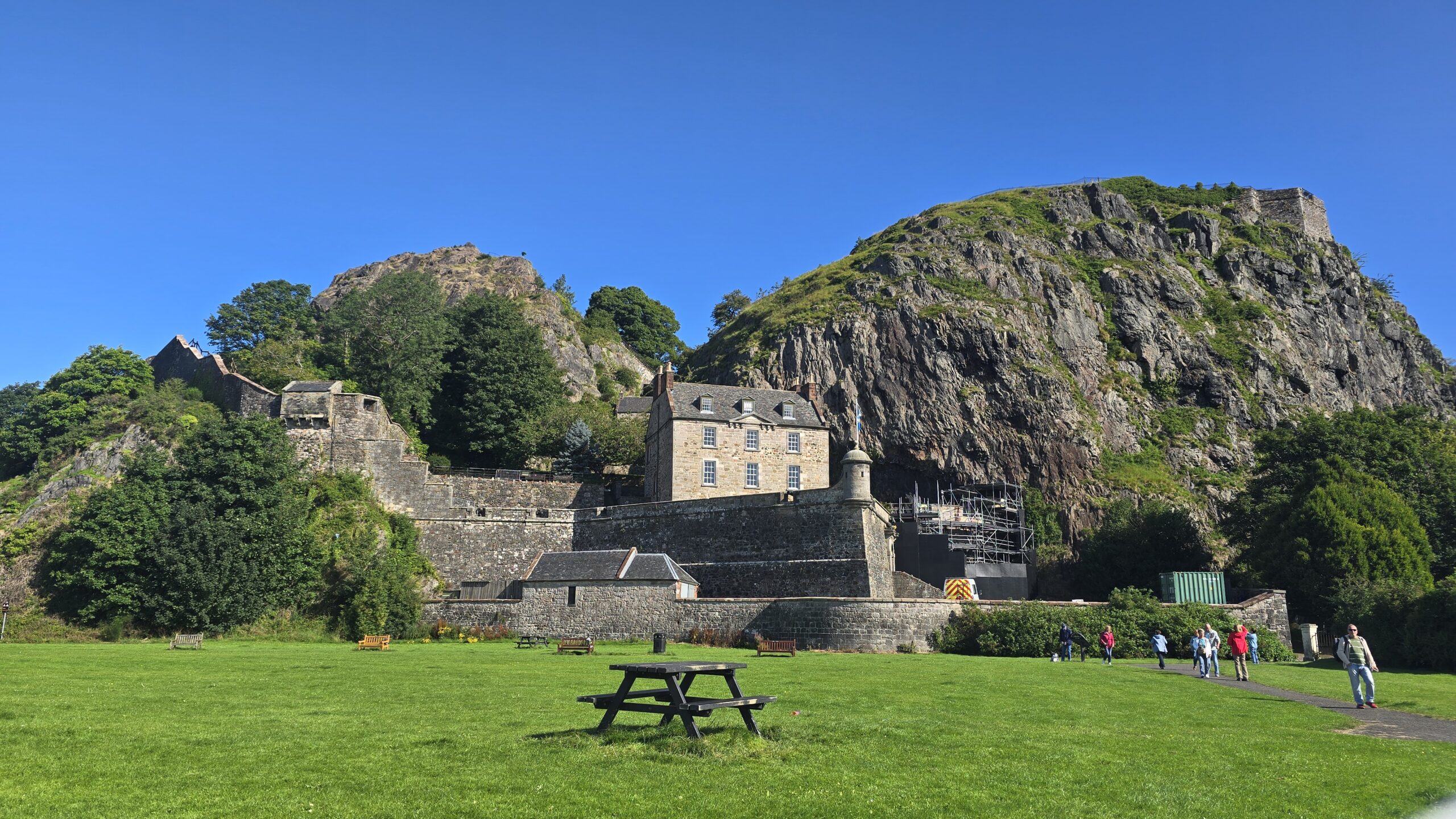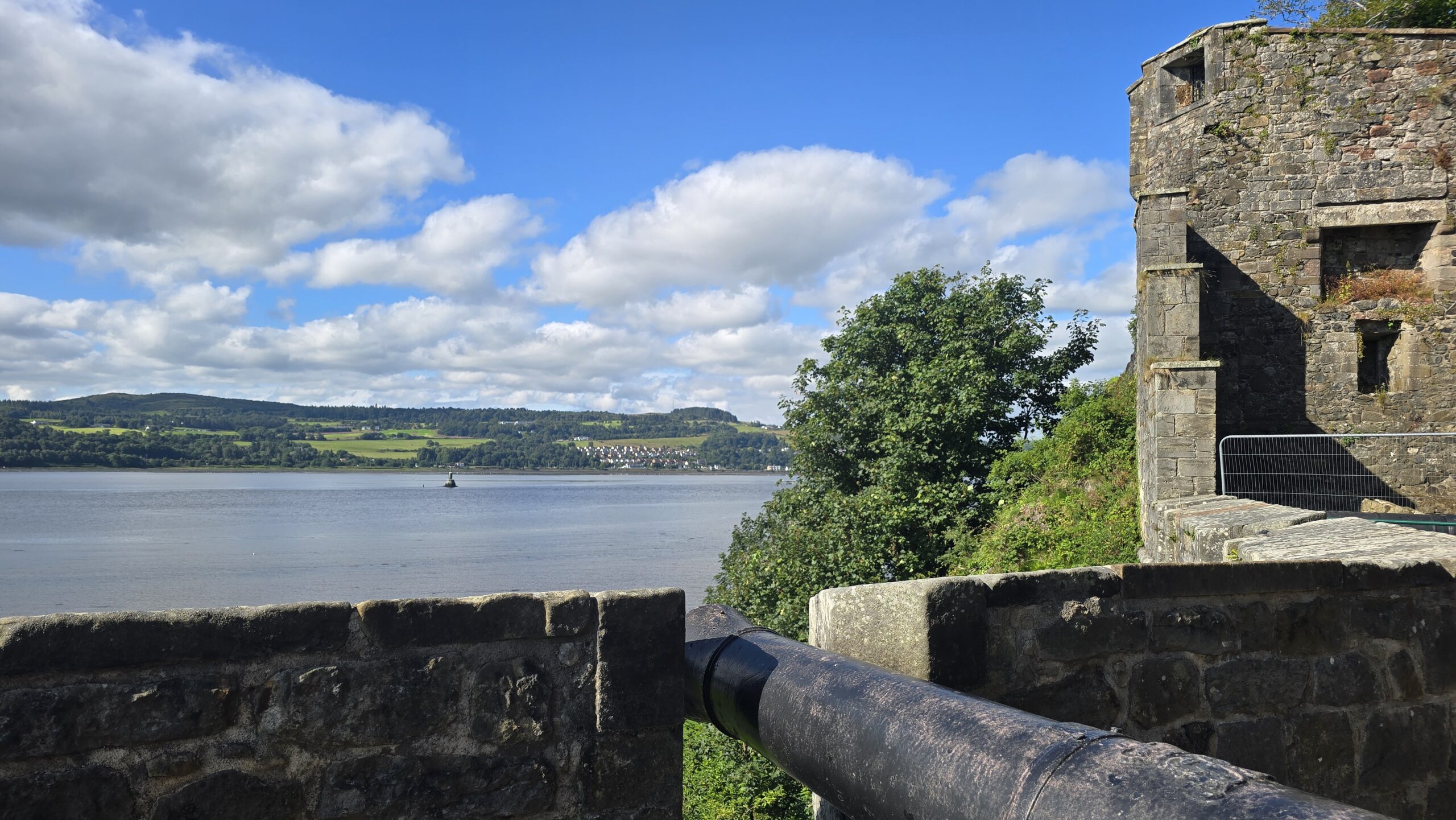 Heute erobern wir eine Burg vor den Toren Glasgows, die zuletzt die Dänen unter Olaf dem Weißen und Ivar dem Knochenlosen erobert hatten. Das war im Jahr 870. Unsere Eroberung beschränkt sich auf das Vorzeigen der Eintrittskarten und dann können wir die restaurierten Einheiten vom Gouverneurshaus bis ganz nach oben erkunden. Ein traumhafter Ausblick eröffnet sich oben über den Clyde und seinen Nebenarm, ein Besuch der Kammer, in der Mary, Queen of Scots, genächtigt haben soll, ist natürlich obligatorisch. Wir genießen die Zeit hier bei strahlendem Sonnenschein.