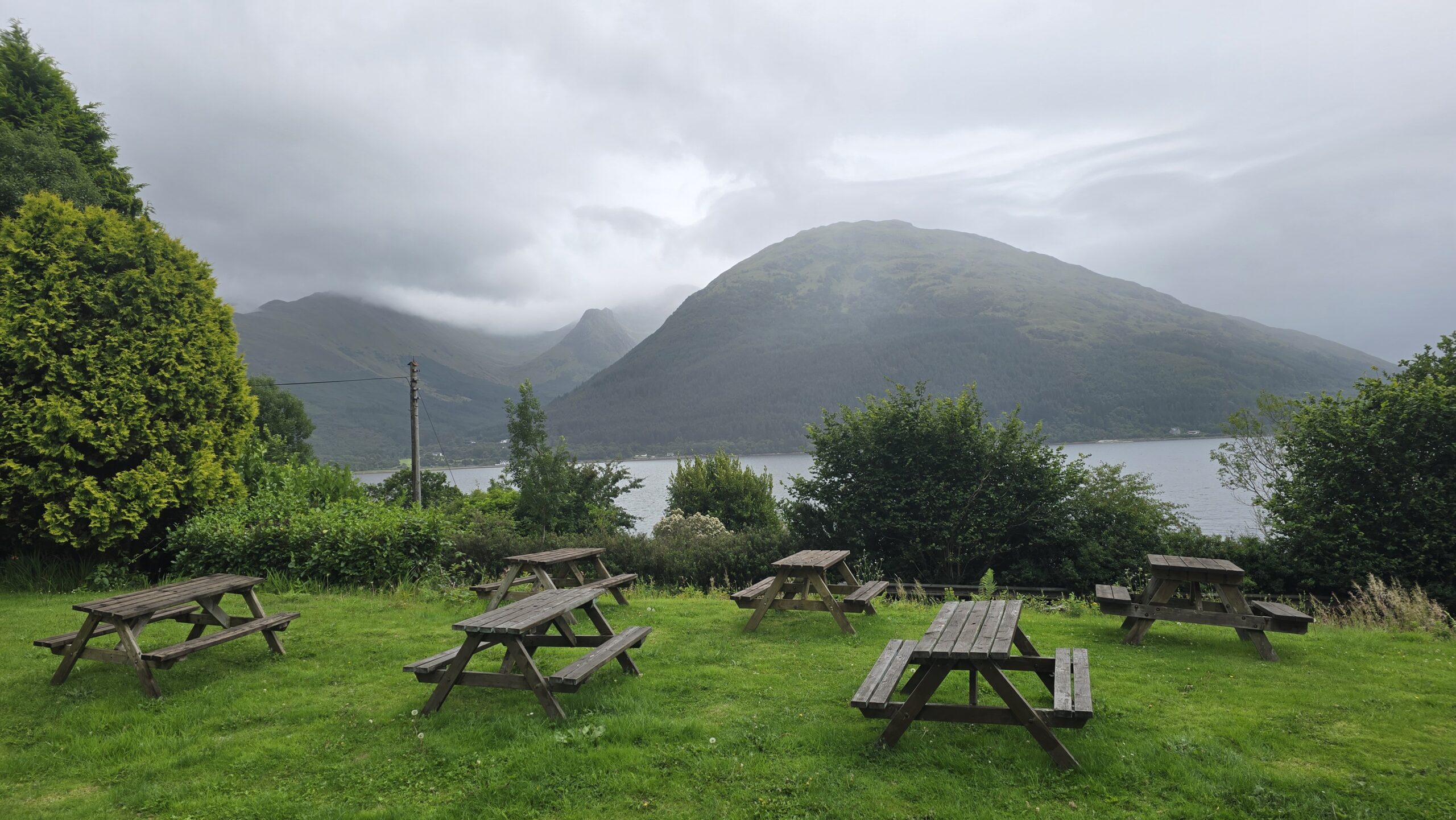 Es ist spät geworden- aber unser Hotel ist nur wenige Minuten entfernt und so können wir am Loch Linnhe einchecken. Was für ein Ausblick! Wer möchte erkundet die Umgebung bis zum Abendessen, das ist lecker und wir verabschieden uns- bis morgen.