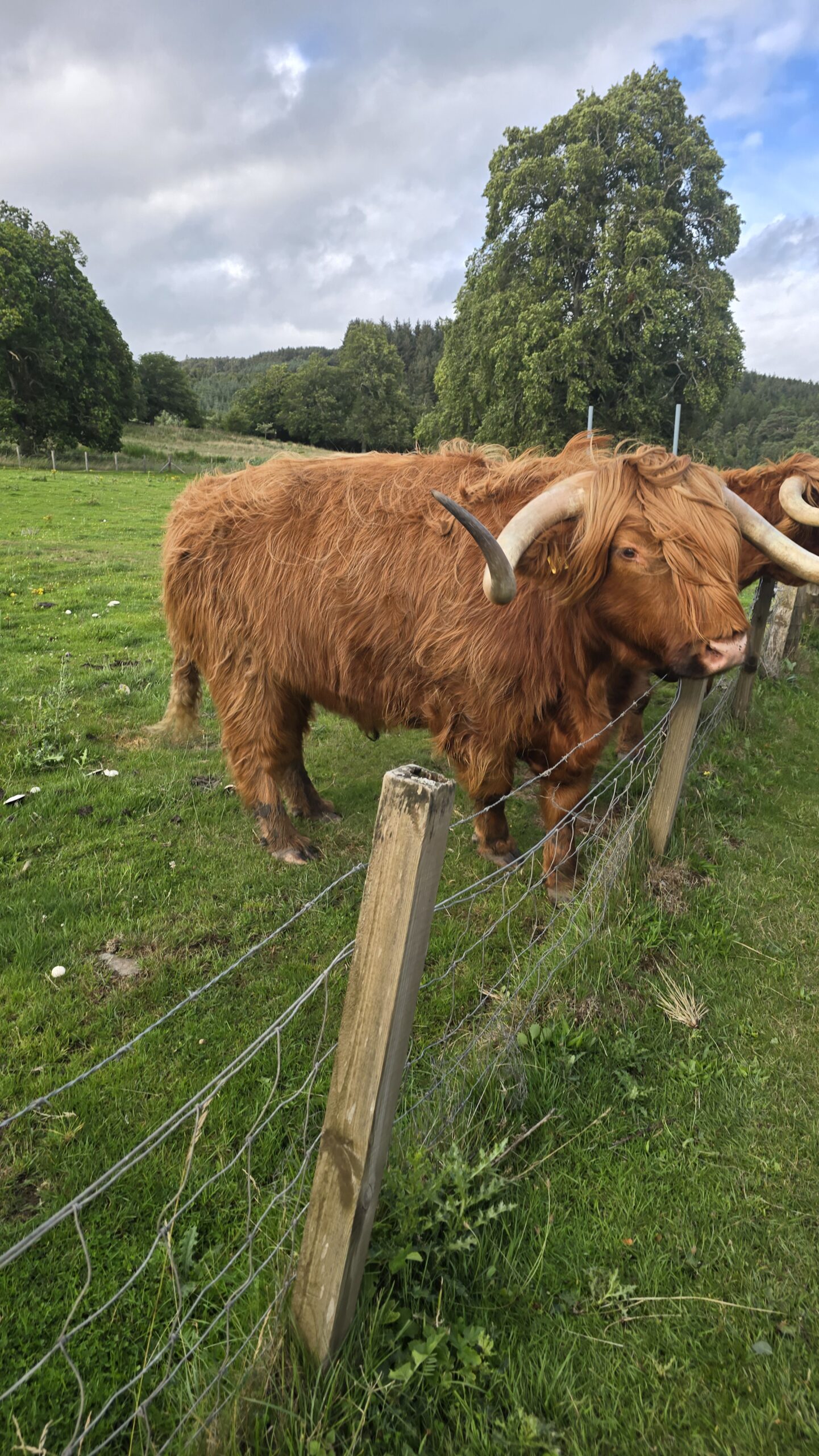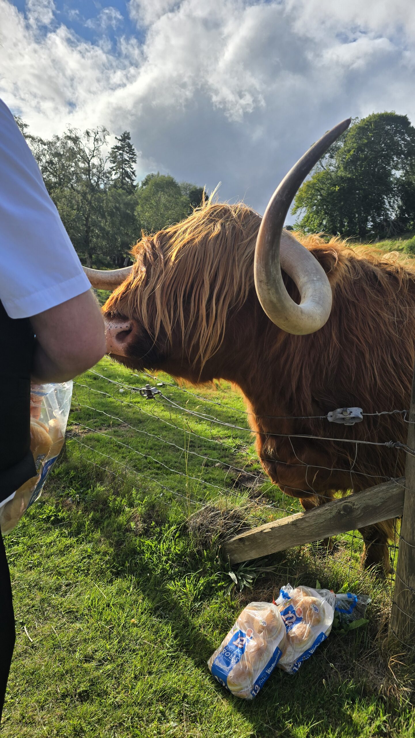 Da uns das Wetter hold ist fügen wir einen Zwischenstopp ein: The Old Packhorse Bridge in Carbridge. Ikonisches Fotomotiv- das auf keinem Schottland-Kalender fehlt. John, unser Busfahrer, hat dann noch die perfekte Überraschung: unter dem Vorwand, für uns Brötchen zum Frühstück gekauft zu haben, hält er an einer Weide und wir können mit eben jenen Brötchen riesige Highlander-Rinder füttern. Was für ein Highlight! Am Hotel angekommen checken wir ein und lassen beim Abendessen den Tag Revue passieren, was auch immer geplant war- wir haben trotz Floris das Beste daraus gemacht. Darin waren sich alle einig.