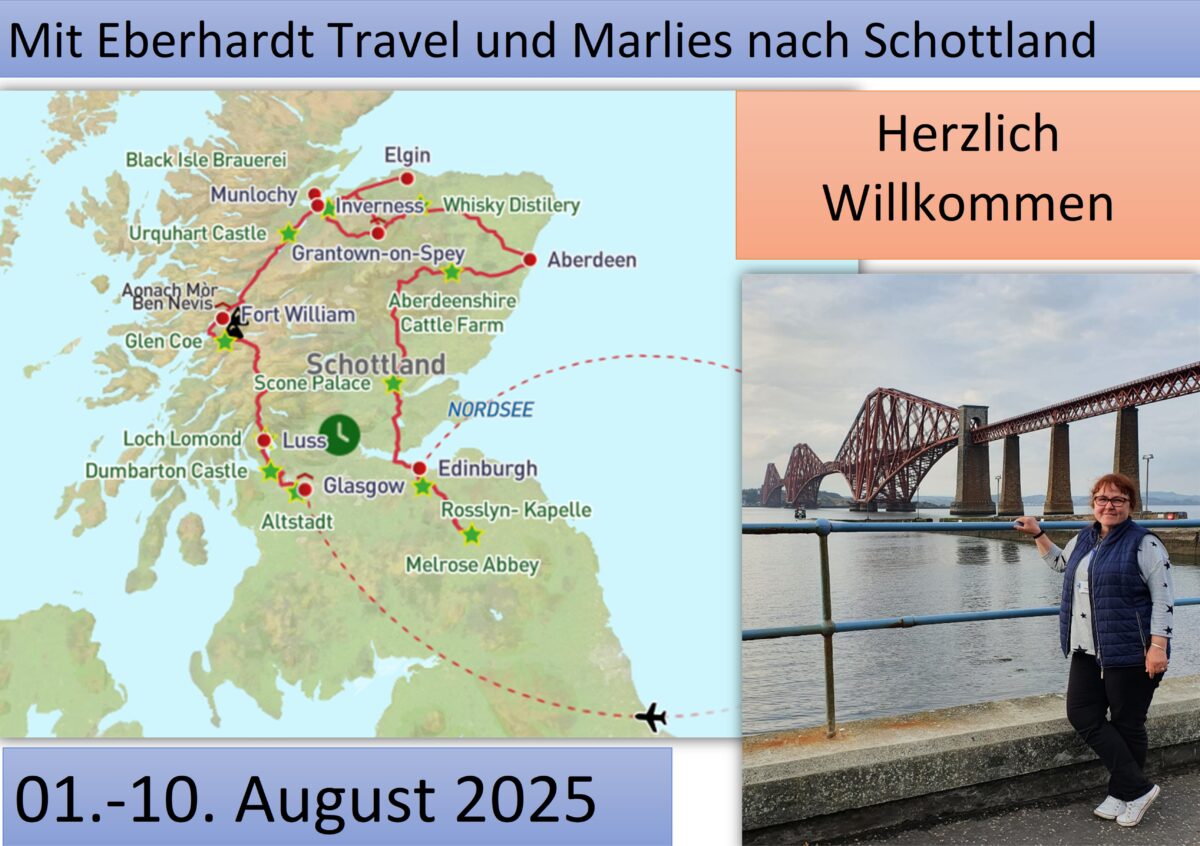 Vielen Dank an Euch alle, es wird eine unvergessliche Zeit in Schottland für uns alle bleiben. Danke für Euer Verständnis, wenn Orkan Floris uns ordentlich ins Programm gefunkt hat, danke für Eure Neugier und Freude auf eines der schönsten Länder der Welt: Schottland. Gern habe ich Euch begleitet und vielleicht sehen wir uns wieder auf einer nächsten Reise. Bis dahin bleibt gesund und neugierig, Eure