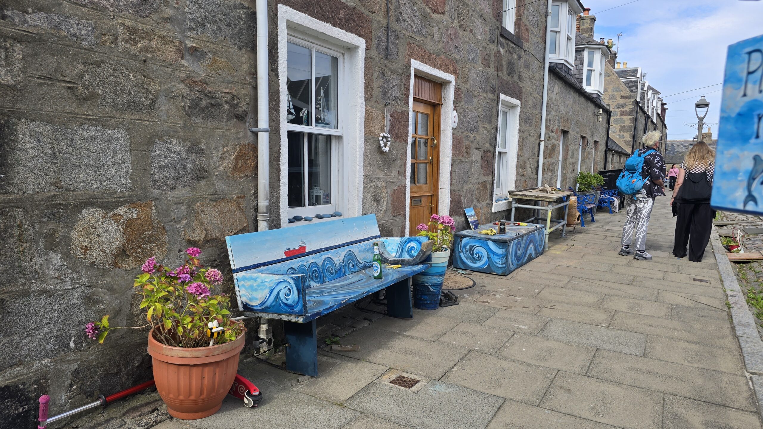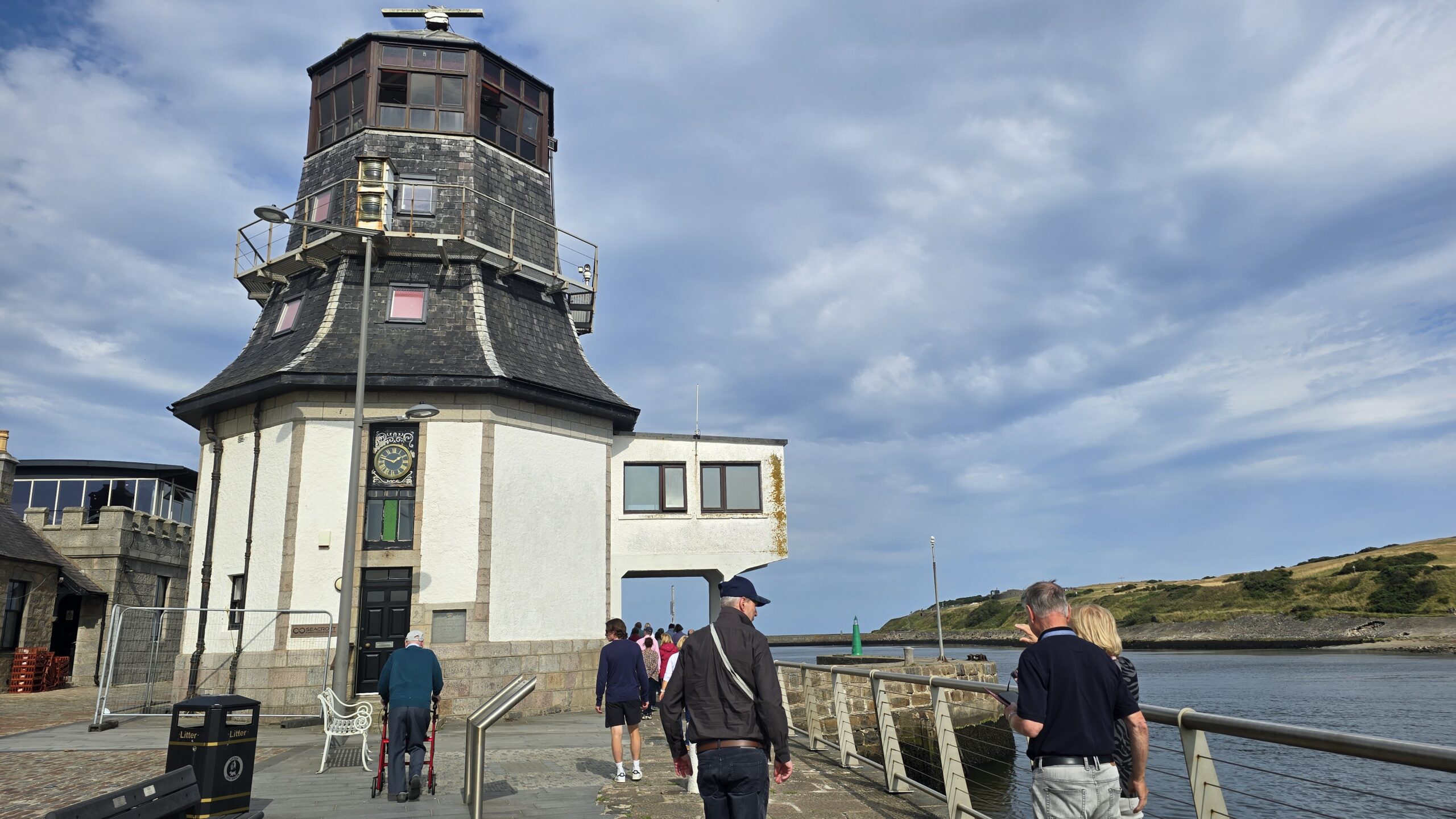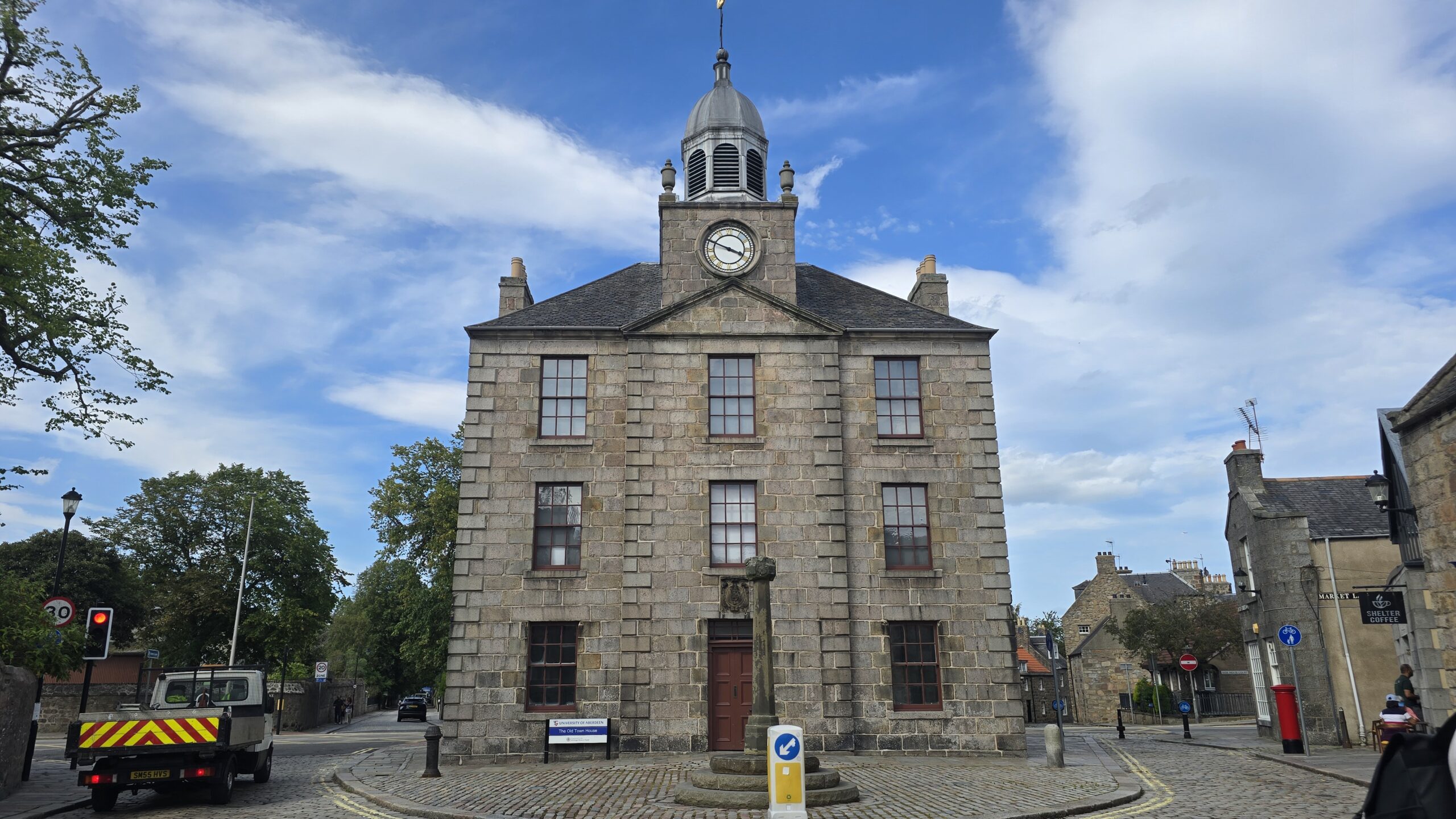 Dann heißt es: weiterfahren. Schließlich wollen wir noch an die Ostküste, nach Aberdeen. Eine kleine Servicepause unterwegs und am frühen Nachmittag erreichen wir unser Ziel. Wir treffen unsere Stadtführerin Isabel wie vereinbart am Kings College, streifen mit ihr durch dieses ehrwürdige Gebäude, erkunden die historische Umgebung und fahren dann ins sogenannte Fischerviertel. Früher den Fischern und ihren Familien vorbehalten sind es heute angesagte und begehrte Wohn(T)räume. Alle hatten früher einen Schuppen- auch die sind vermietet und werden für alle möglichen Einrichtungen genutzt… Am Strand geht es zurück zum Bus und weiter in die Stadt. Wir steigen aus und spazieren gemeinsam zum Marishall College, heute Sitz der Stadtverwaltung- immer noch das größte spätgotische Gebäude aus Granit. Umwerfend und im Sonnenschein funkelnd und glänzend. Daher hat Aberdeen auch seinen Beinamen: die funkelnde Stadt, viele Häuser sind hier aus Granit und funkeln in der Sonne. Noch ein Abstecher zum ältesten Gebäude und für ein Eis reicht die Zeit allemal… Wir verabschieden uns von Isabel und fahren ins Hotel. Hier wartet am Abend wieder ein leckeres 3-Gänge-Menü auf uns.