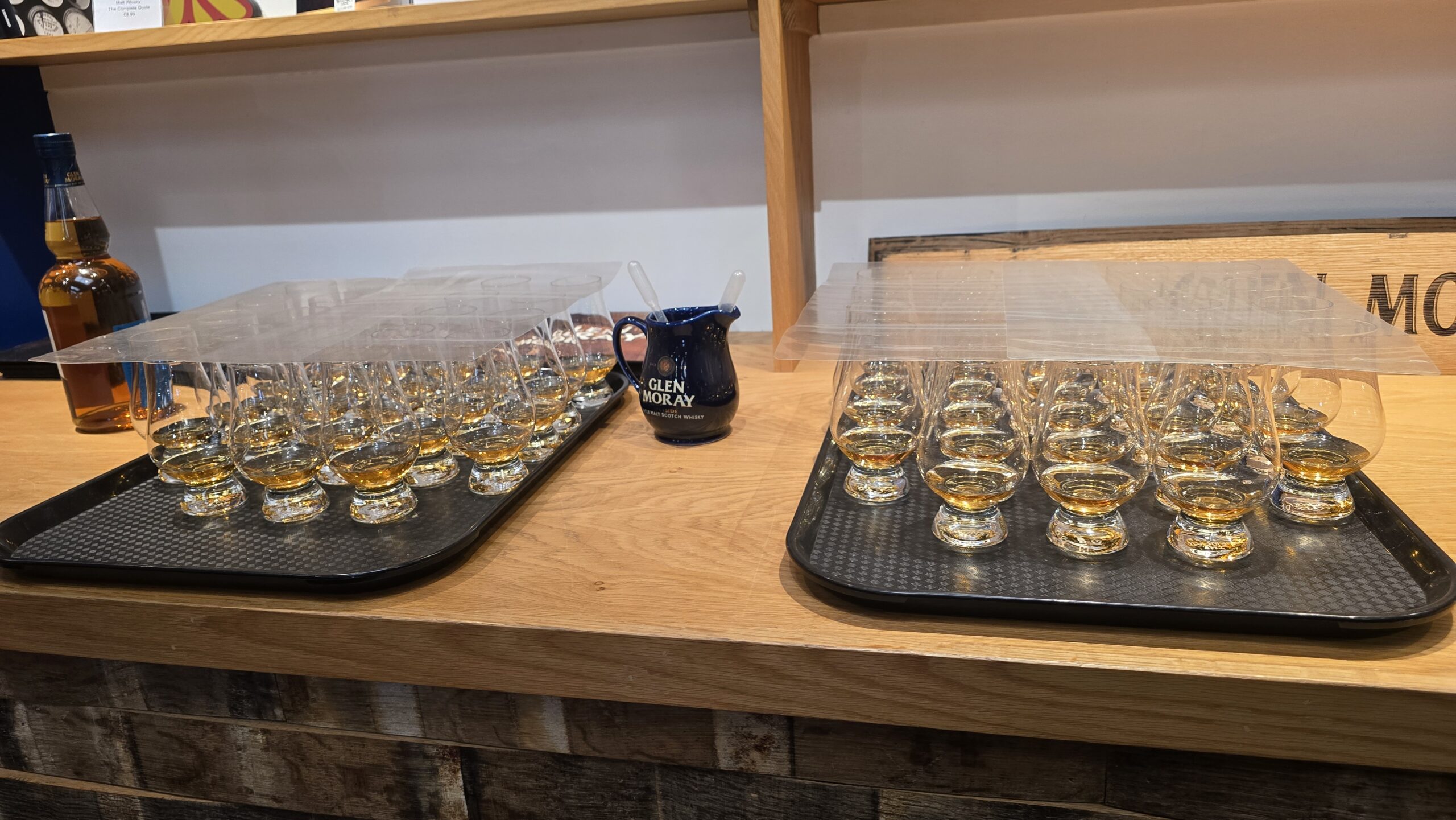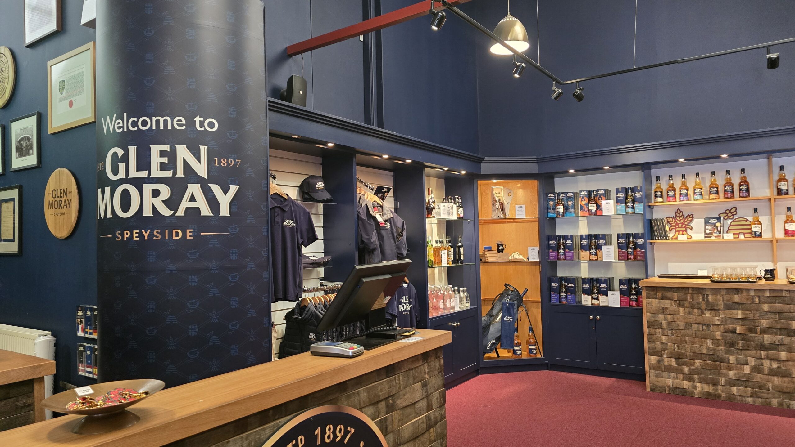 Nun aber geht es weiter im Thema: die Moray Distillery erwartet uns. Sie ist nur einen Katzensprung entfernt und mit Anne und James geht es durch die „heiligen Hallen“. Vom Mälzen über das Maischen und Fermentieren ähnelt es dem Bierbrauen, so bekommt man auch ein ca. 8%iges Bier zum Anfang. Das reicht natürlich bei weitem nicht aus, der benötigte Alkoholgehalt wird erst durch das Brennen erreicht. Nach dem zweiten Brennvorgang hat man dann 60-80%igen Alkohol, der Spirit kommt in Tanks und dann in die Fässer zum lagern (schlafen). Erst wenn dieser mit mindestens 40% abgefüllt wurde und wenigstens 3 Jahre (und einen Tag) in einem Eichenfass gereift ist darf er sich Whisky nennen. Natürlich beendet eine Kostprobe unseren Besuch hier und dabei erfahren wir auch, wie sehr ein winziger Tropfen Wasser im Glas den Charakter (und Geschmack) des Whiskys ändern kann.