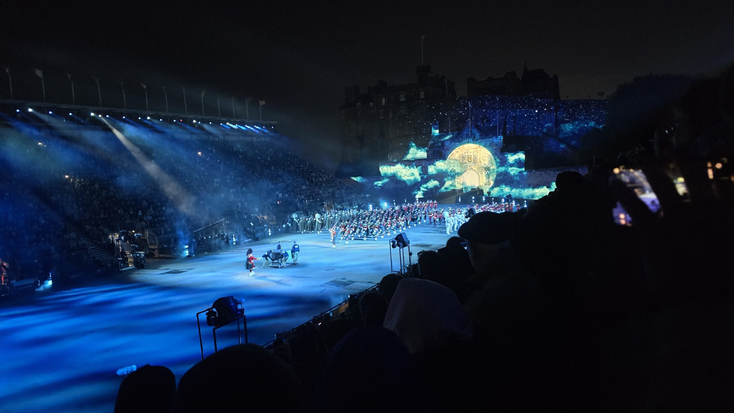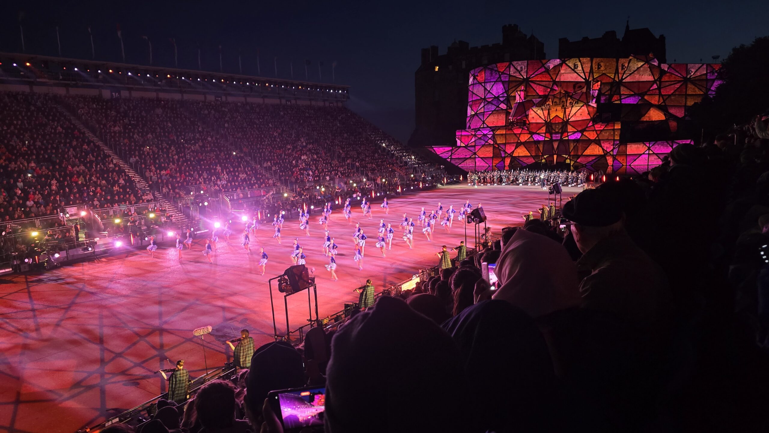 Das zeitigere Abendessen war perfekt getimet- jetzt reihen wir uns ein in die Schlangen vor dem Castle, denn das Military Tattoo steht auf unserem Programm. Problemlos passieren wir den Sicherheits-und Ticket-Check, nehmen unsere Plätze auf den Tribünen auf der Esplanade des Castles ein und die Vorfreude steigt. Ein mitreißender Abend wird es werden, unglaublich, die Darbietungen der internationalen Gäste des diesjährigen Jubiläums-Tattoos. Und die der Drums & Piper sowieso. Ein Feuerwerk beendet diesen besonderen Abend und wir spazieren – immer noch voller Musik, Tanz, Farben und Licht- zurück zum Hotel. Was für ein Tag!