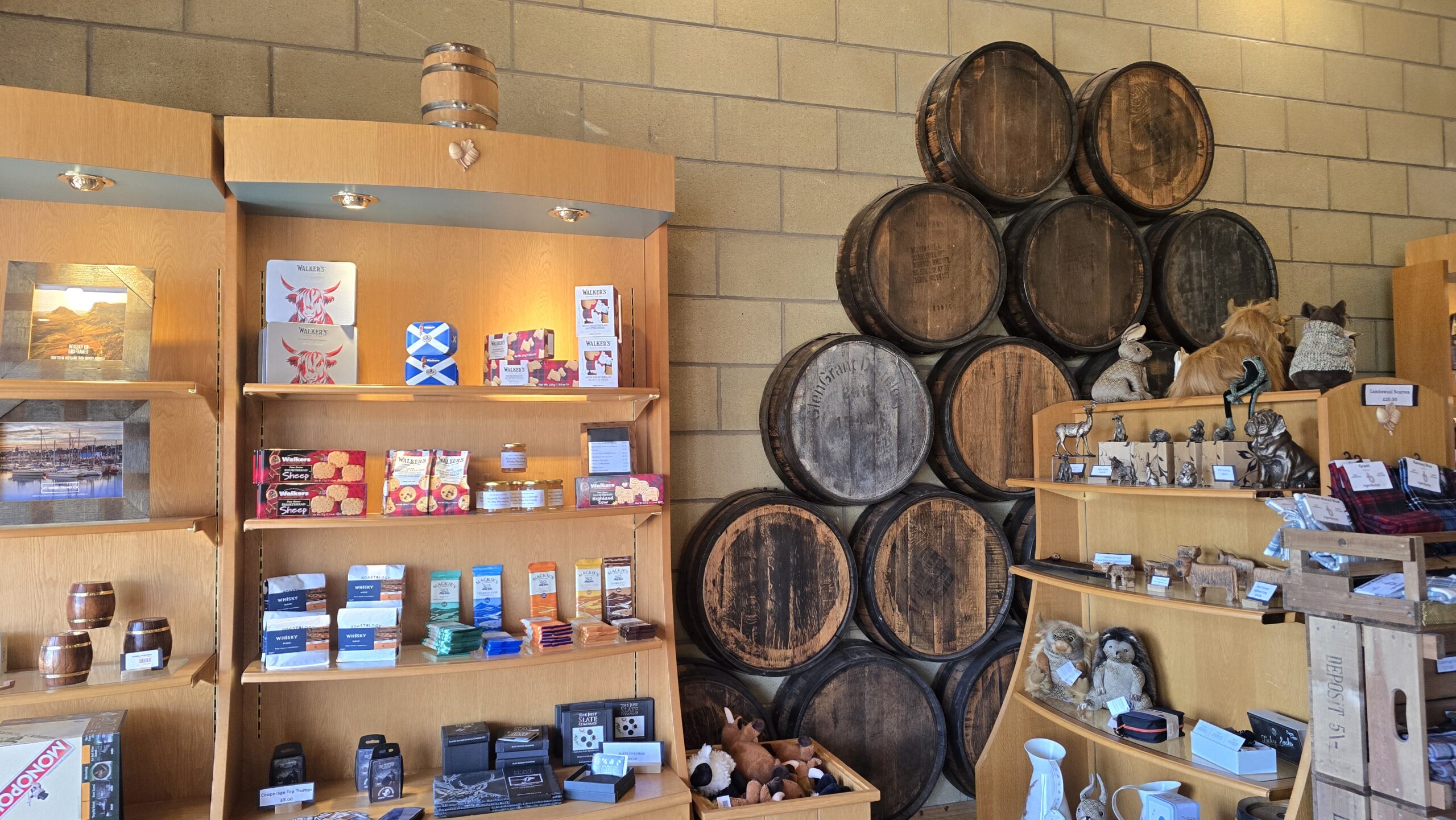 Heute widmen wir uns dem „Wasser des Lebens- Uisge Bhea“. Dem Whisky. Dazu begeben wir uns auf den Malt-Whisky-Trail. Schließlich gab es hier einmal mehr als 100 Whisky-Destillerien. Ein kleiner Umweg führt uns zu einem speziellen Fotostopp: zur Speyside Cooperage. Hier werden Fässer gebaut und aufgearbeitet, in denen dann der Whisky lagert. (die Schotten sagen aber: er schläft.) Wir können einen Blick ins Besucherzentrum werfen und uns die Fotos der Böttcherei im Außengelände anschauen. Hier arbeitet David McKenzie, er hält den Weltrekord im Fassmachen: er benötigte gerade einmal 3 Minuten und 18 Sekunden für ein 190 l-Fass. Unglaublich.