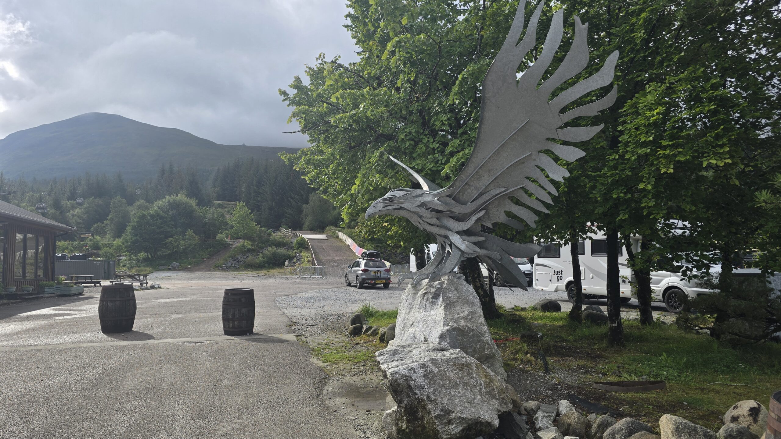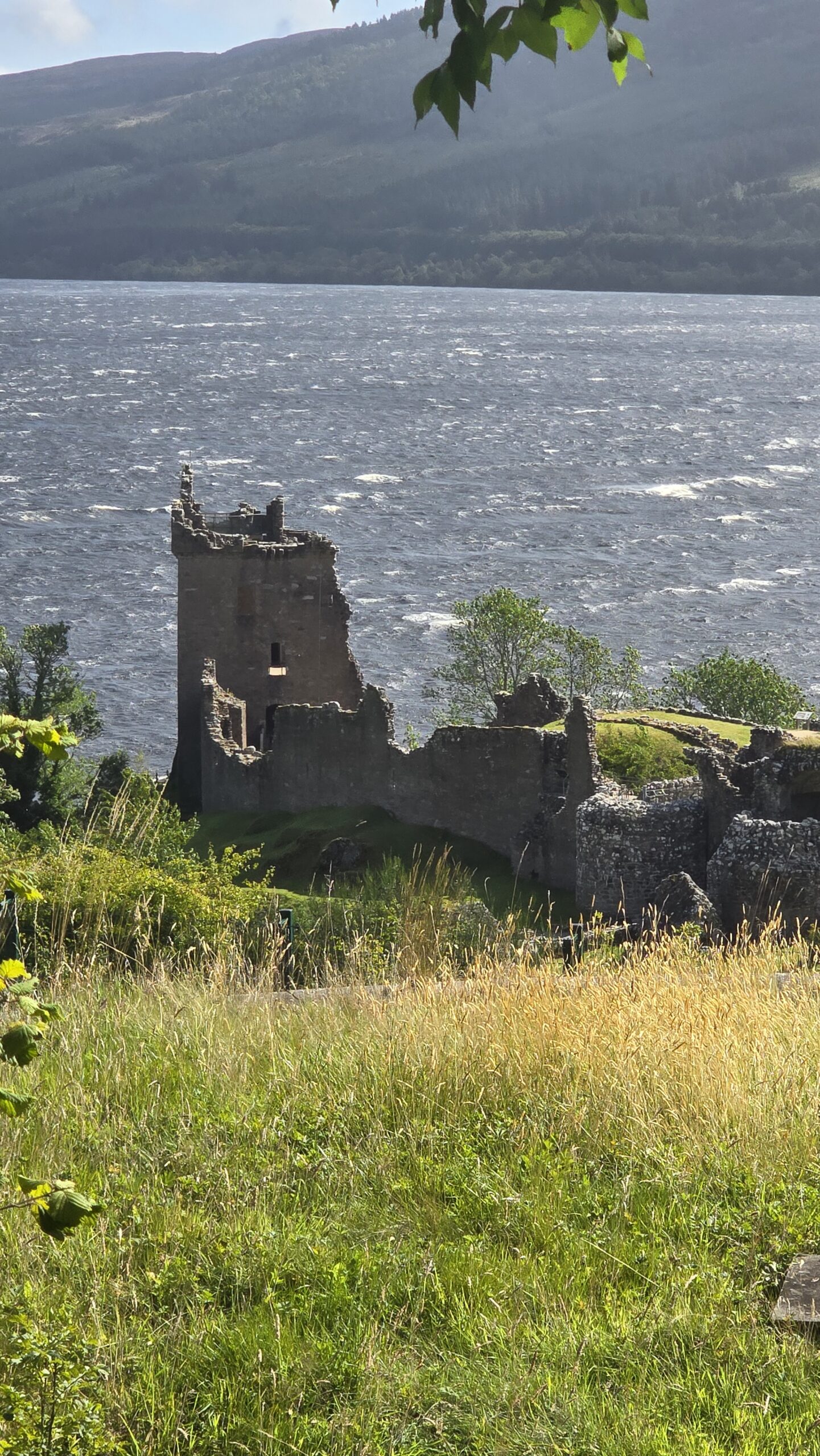Floris, der Wirbelsturm, trifft heute auf die Westküste Schottlands. Er ist „nur noch“ ein Orkan, das reicht uns aber. Es herrscht Warnstufe Orange, Brücken sind gesperrt, es fahren kaum Züge, Castles sind geschlossen… So auch unser Urquhart Castle- Also entscheiden wir kurzfristig, dass wir die Loch Ness Exhibition besuchen nahe Urquhart Castle. Umgestürzte Bäume säumen unseren Weg aber wir haben Glück. Sofort sind die Mannschaften der Feuerwehr zur Stelle und beräumen die Straßen. Wir statten nahe Spean Bridge dem Commando Memorial einen kurzen Besuch ab, die (eigentlich) imposante Bergkette ist kaum zu sehen in den Wolken. Hier befand sich eine Ausbildungsstätte der Armee, heute gibt es Erinnerungsgärten für die gefallenen Soldaten.