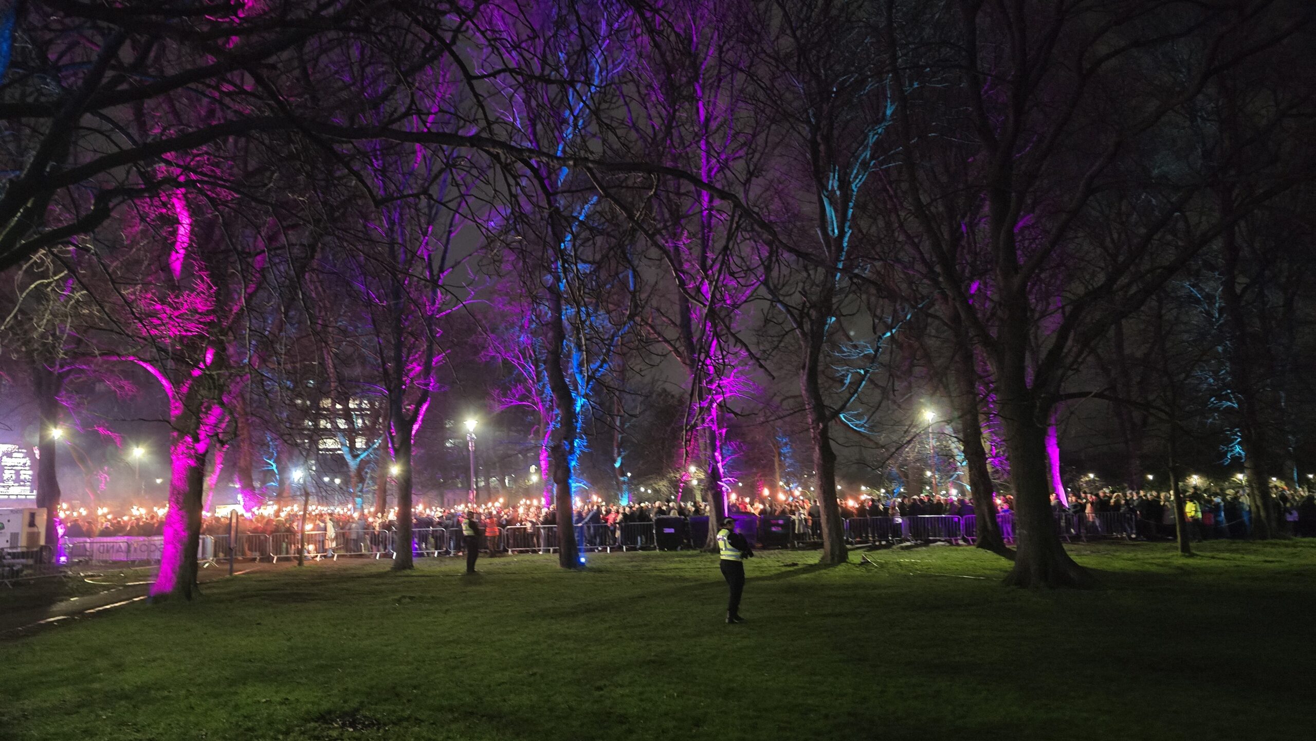 So stoßen wir auf das neue Jahr an und genießen das Spektakel aus Licht, Fontänen und der Lebensfreude von Hunderten Menschen ringsumher, die gemeinsam Auld Lang Syne singen und feiern. Frohes Neues Jahr!