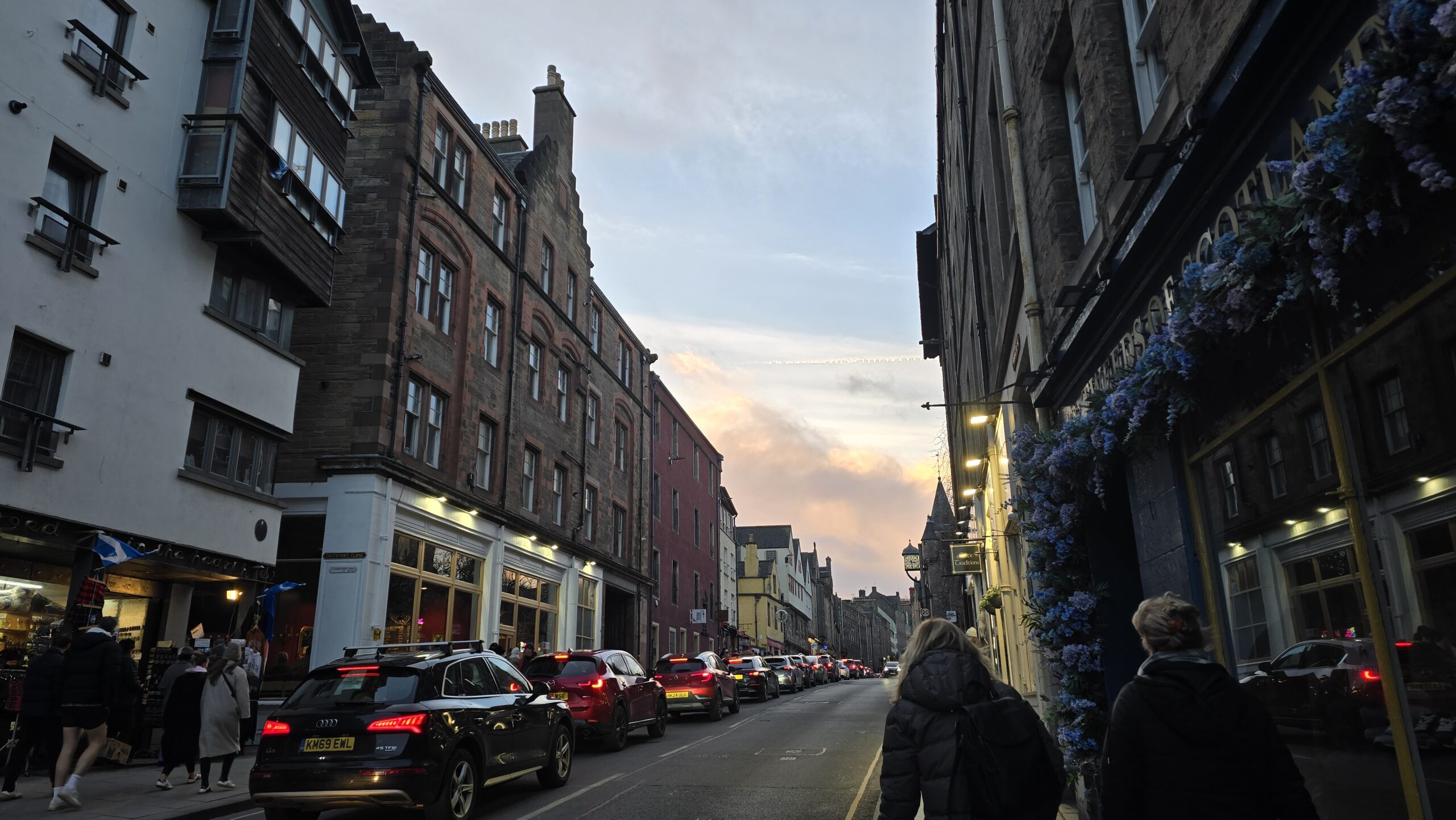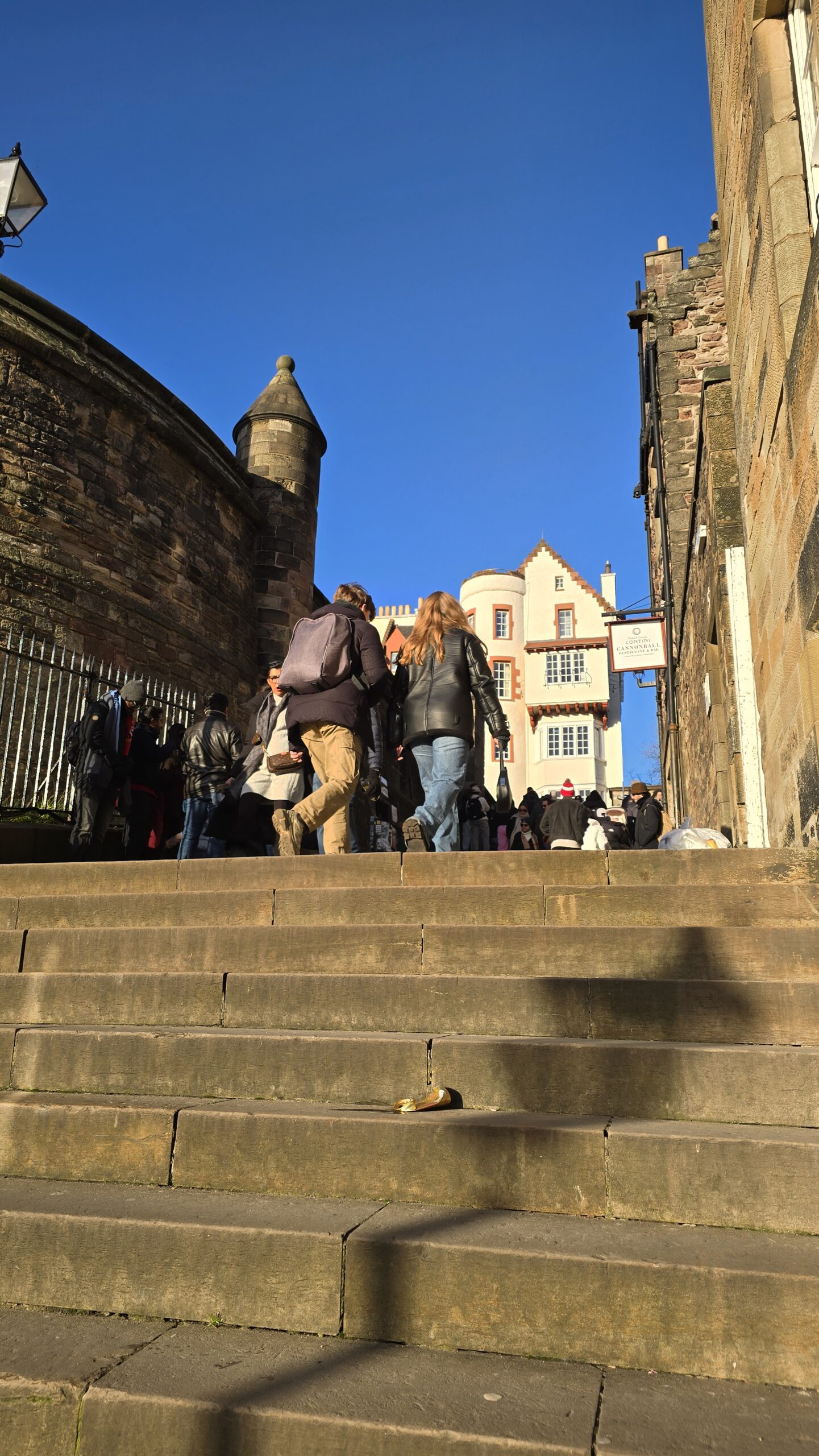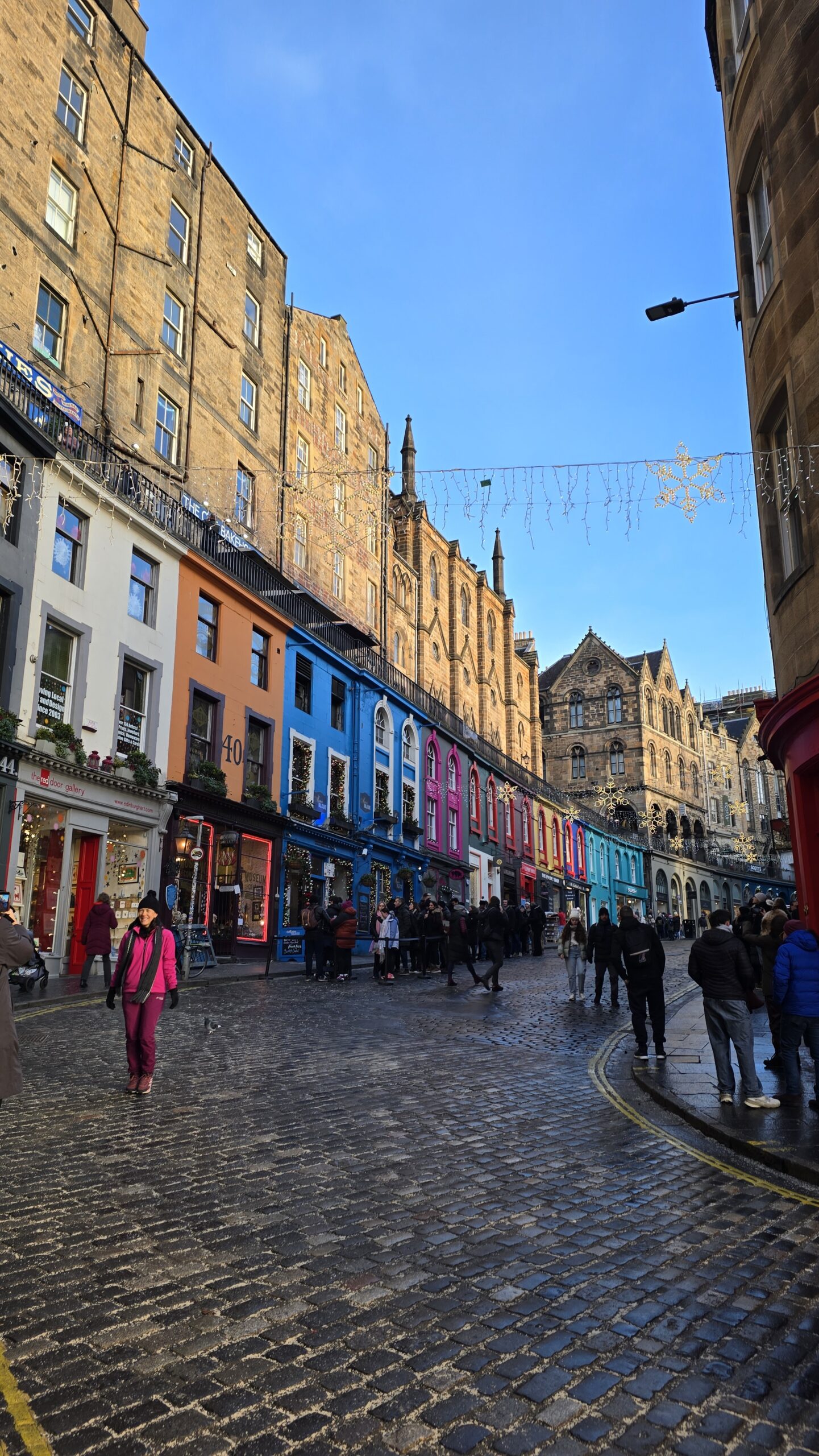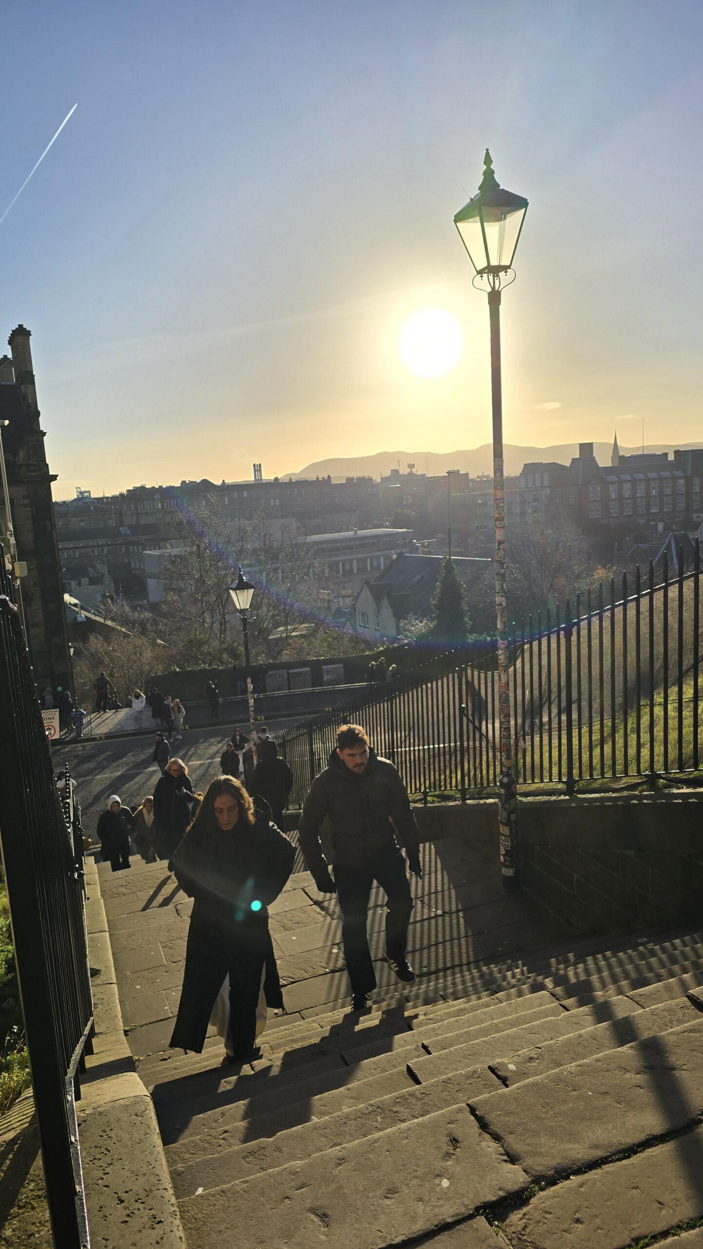 Heute können wir fast „ausschlafen“. Nach einem guten Frühstück, das keine Wünsche offen ließ, starten wir 9 Uhr mit Gary, unserem Busfahrer und Patrick, unserem Stadtführer. Zunächst geht es zur Neustadt, ebenso wie die Altstadt Edinburghs Weltkulturerbe der UNESCO. Am Charlotte Square sehen wir das Büro des ersten Ministers- quasi wie bei uns der Kanzler. Ganz ohne Wachen und Absperrungen… Auf dem Platz selber das Reiterstandbild von Prinz Albert, dem Gemahl von Königin Victoria. Ihm verdanken wir u.a. die kostenfreien Museen und Ausstellungen im Land. Wir passieren die Princes Street, das Denkmal für Sir Walter Scott und das berühmte Hotel „Balmoral“. Dessen Uhr im Turm geht immer einige Minuten vor, damit die Schotten ihren Zug, der direkt unterhalb des Hotels vom Bahnhof Waverley abfährt, erreichen 🙂 Weiter geht es zum Calton Hill, einem der 7 Hügel der Stadt. Wir spazieren hinauf und erleben einen wunderbaren Sonnenaufgang / frühen Morgen über der Stadt. Der Blick auf die Stadt ist überwältigend- in alle Richtungen. Anschließend fährt uns Gary zum schottischen Parlament, das gleich gegenüber der Residenz des Königs erbaut wurde, Palace of Holyrood House. Hier stand einst außerhalb der Stadtmauern eine Abtei- das werden wir uns in ein paar Tagen noch ansehen. Wir parken an der Ausstellung Dynamic Earth, nutzen hier die Möglichkeiten für eine Service-Pause bevor es weitergeht Richtung Royal Mile. Die ist 1800 Meter lang (eine schottische Meile) und verbindet das Castle auf dem Castlehill mit Holyrood Palace. Bald schon passieren wir die ehemalige Stadtmauer- ein Pub mit dem Namen „Worlds End“ erinnert daran. Hier war für viele tatsächlich die Welt zu Ende. Die Gebühr, die Stadt zu verlassen oder zu betreten konnten sie sich schlicht nicht leisten. Bis zur South Bridge kommen wir, dann ist bereits alles weiträumig abgesperrt, also fahren wir am Nationalmuseum vorbei, sehen Greyfriars Bobby und den Grassmarket mit seiner Hinrichtungsstätte. Patrick erzählt die Geschichte von Mary Dickons, nach der ein Pub benannt ist, wie auch andere Pubs nach dem makabren Platz heißen: Last Drop… Auch unser Pub, in dem wir am Neuhjahrsabend gemeinsam Essen werden, ist hier: Beehive Inn, Liebslingspub von Charles III. wenn er in der Stadt ist. Es geht nochmals über die Princes´Street und an der Nationalbibliothek verabschieden wir uns von Patrick und Gary.