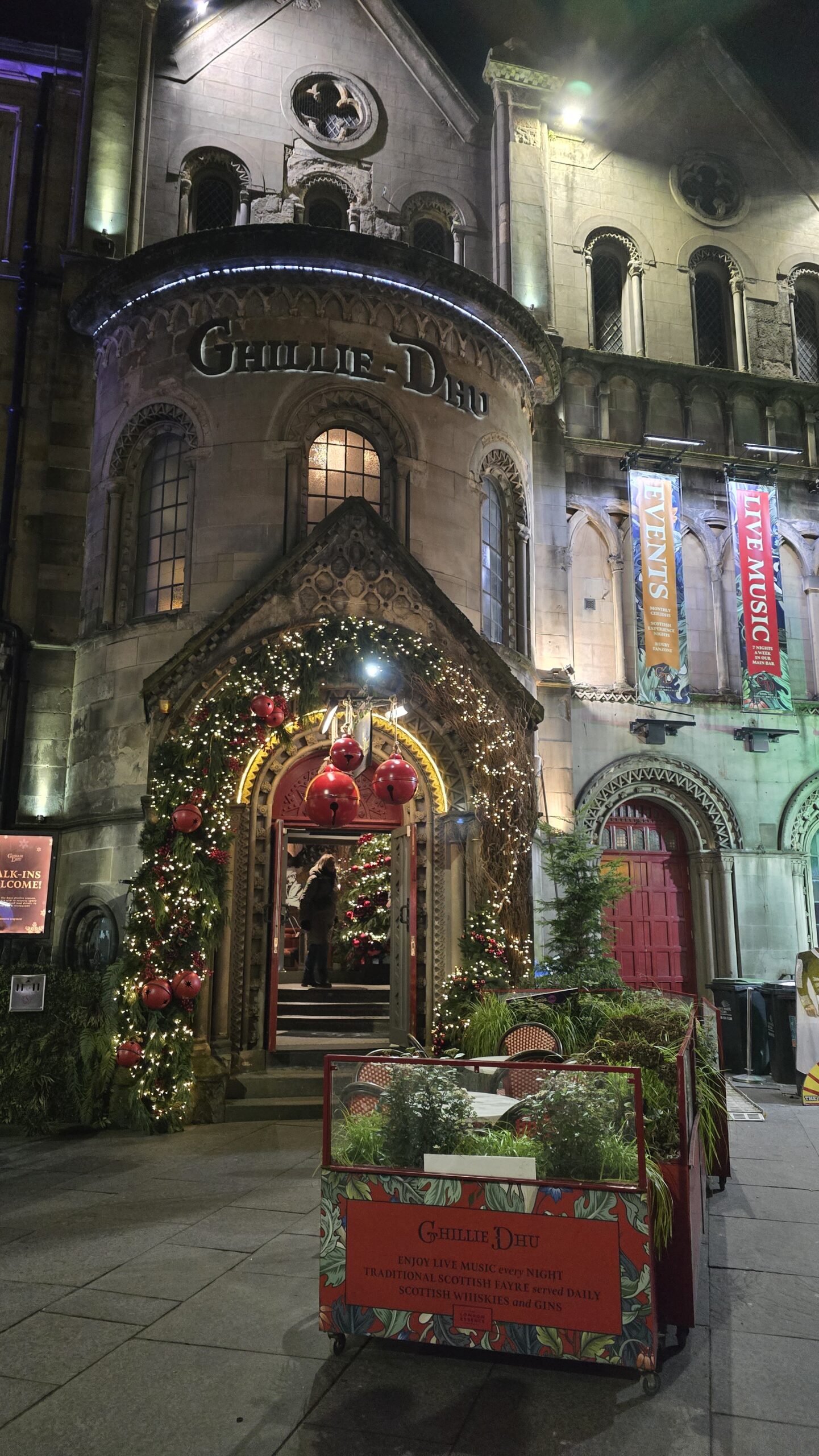 Erst am Abend treffen wir uns wieder und laufen gemeinsam zum Pub „Ghillie Dhu“. Das heißt soviel wie „Waldgeist“, eine alte keltische, mystische Figur. Passend dazu ist unser Pub in einer ehemaligen Kirche untergebracht- eine einmalige Location. Das Essen ist lecker und dann gibt es auch Live-Musik. Was wollen wir mehr?