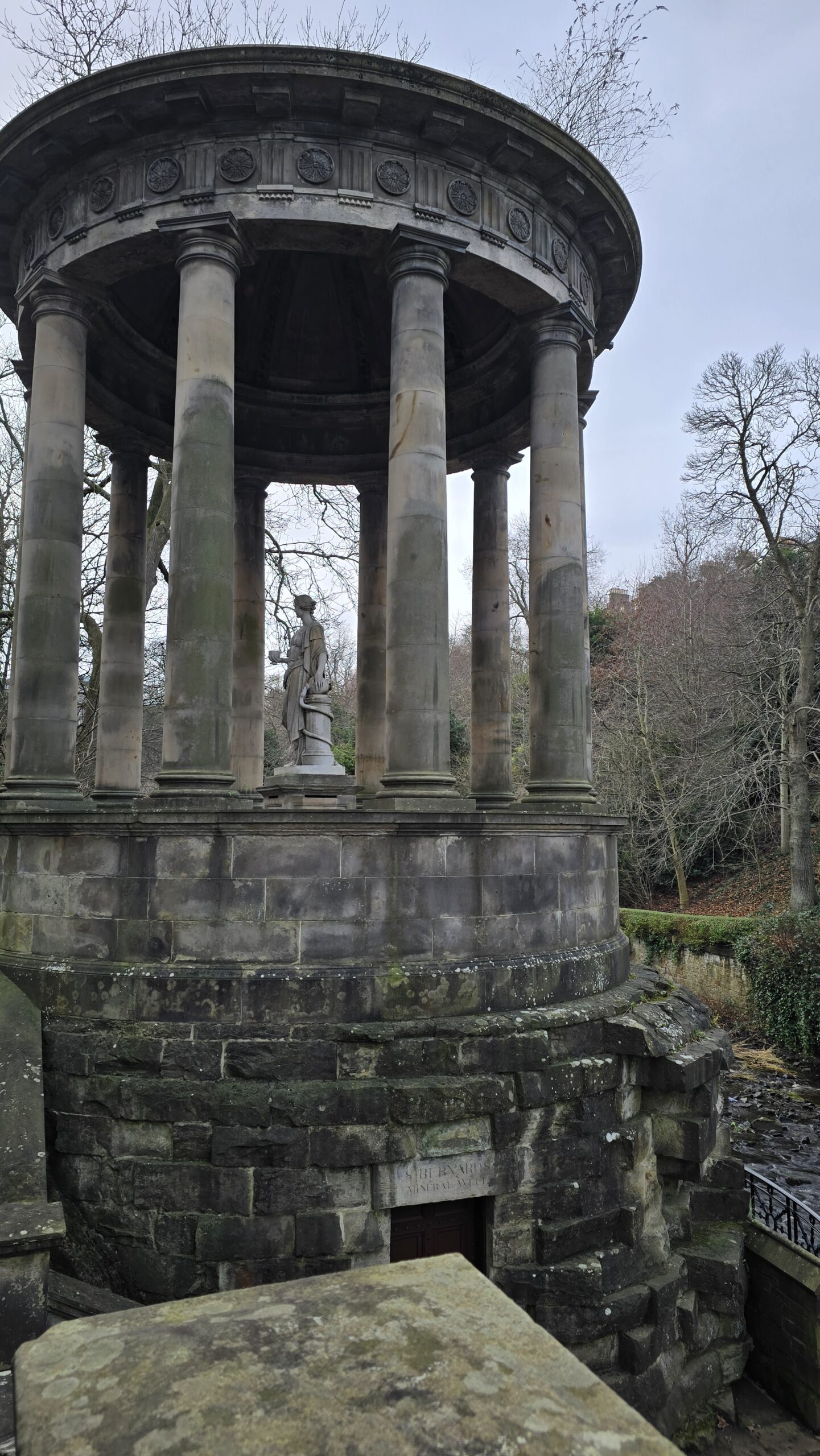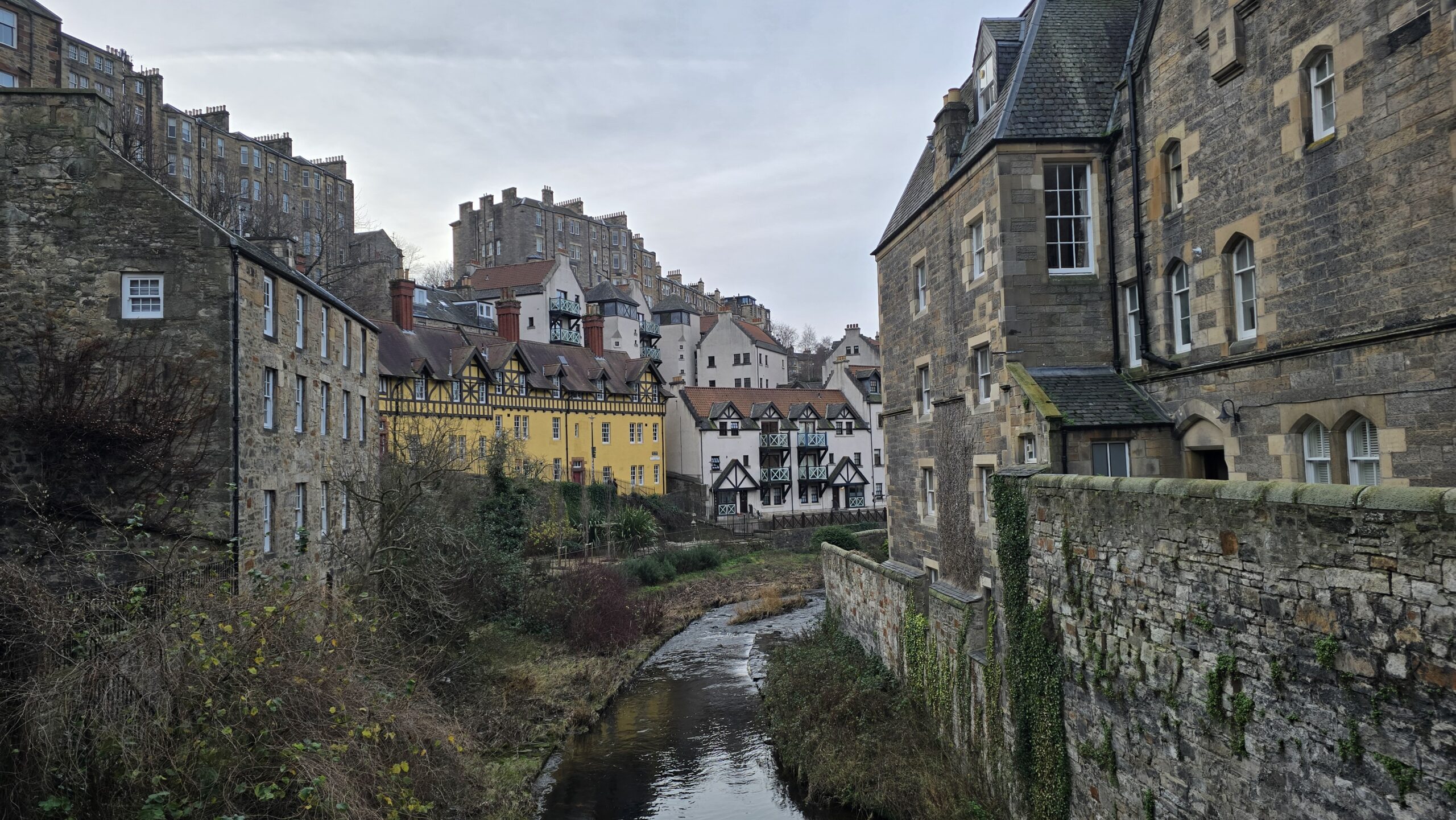 Neujahr! Bis zum frühen Nachmittag ist Freizeit angesagt. Wer möchte kommt mit mir zu einem Spaziergang am Water of Leith entlang. Ein Juwel- mitten in der Stadt: Dean Village. An der Bedford Terrace biegen wir auf den Water of Leith Walkway ab und spazieren am Wasser entlang. Mehr als 10 Mühlen trieb es einst an- daher der Name des Ortes. Am Wehr vorbei erreichen wir bald schon den View-Point. Ein toller Blick auf die Häuser und Well Court, ein imposanter Bau aus rotem Sandstein mit Türmen und Türmchen. In der Miller Row sehen wir die Mühlsteine, die hier die Geschichte symbolisieren und schon sind wir an Dean´s Bridge. Weiter geht es zum St. Bernhards Well- hier entstand ein kleiner Tempel über einer Mineralquelle. Die soll tatsächlich bei der Bekämpfung von Krankheiten geholfen haben- und erbaute als Dank diesen Tempel über dem Brunnen mit der Göttin der Gesundheit, Hygeia. Am Stockbridge Market verlassen wir den Walkway und stärken uns mit einem heißen Kaffee oder Cappuchino. Zurück zum Hotel passieren wir Charlotte Square und schauen uns an, welche Annehmlichkeiten die damaligen betuchten Bewohner in der Neustadt genossen.