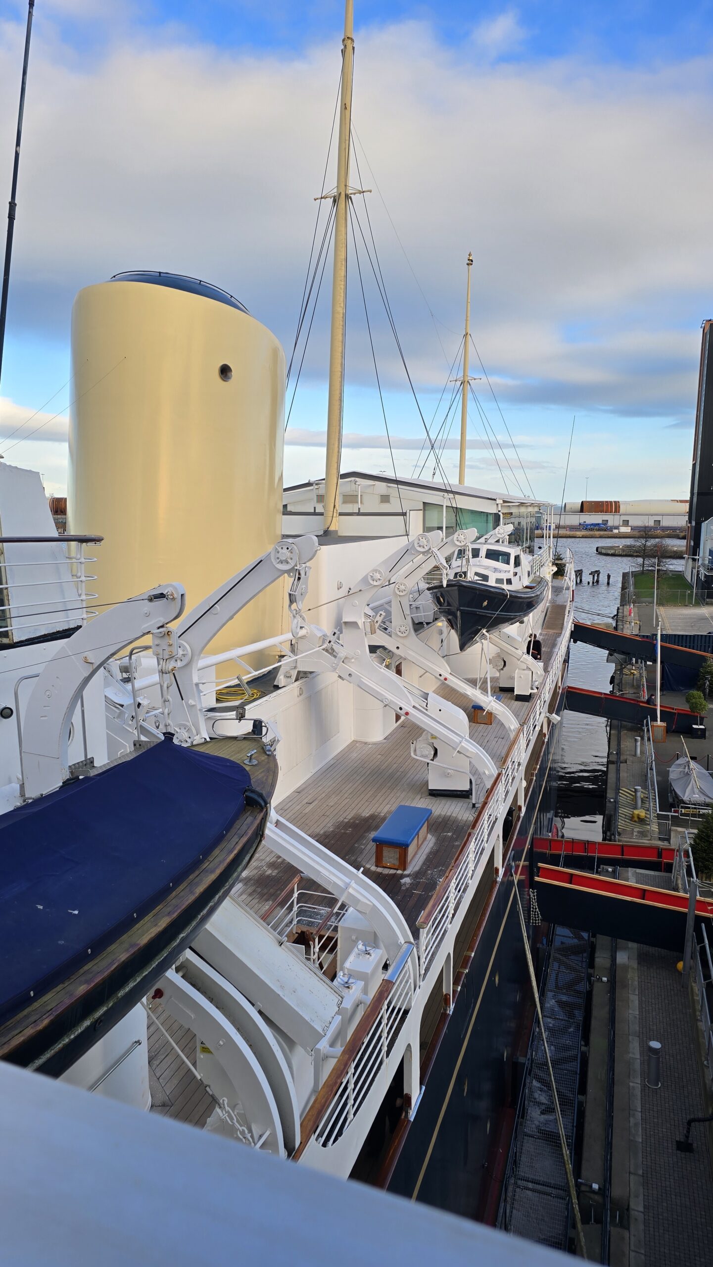 Unser Flieger nach Hause geht heute sehr spät (dass es noch viiiiiel später werden würde…ahnen wir bis dato nicht). Das gibt uns Zeit, noch einiges in Edinburgh zu entdecken. Ein großer Teil unserer Gruppe begleitet mich nach Leith- dort liegt die königliche Yacht Britannia als Museums-Schiff vor Anker. Mit der Tram geht es zum Hafen. Am Ocean Terminal-einem großen Einkaufszentrum, das gerade saniert wurde, steigen wir aus und entscheiden uns für den Besuch der Yacht. Für einige durchaus überwältigend, einmal auf den Spuren der Queen zu wandeln. Sogar ihren Landrover hatte sie an Bord. EIn Blick in die Kajüten darf ebensowenig fehlen wie der auf die Brücke der Yacht. Im royalen Cafe auf der Yacht genießen wir einen royalen blended Tea und natürlich Scones. Ein tolles Erlebnis.
