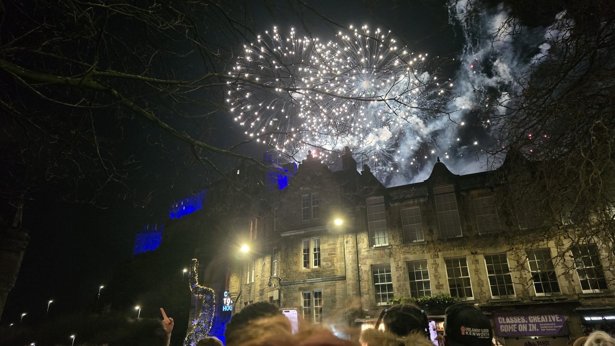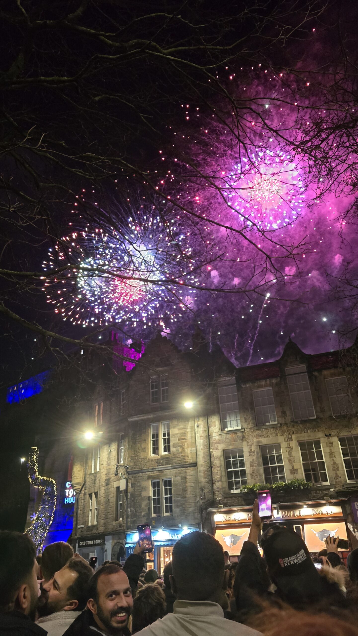 Kurz vor Mitternacht allerdings verlassen wir die Party und machen uns auf den Weg zum Grassmarket. Hier, unterhalb des Castles, wollen wir uns das berühmte Feuerwerk anschauen. Alle bekommen ein Whisky-Glas, vorab gefüllt mit Schokolade, die wir dann wahlweise gegen Whisky oder Sekt tauschen 🙂