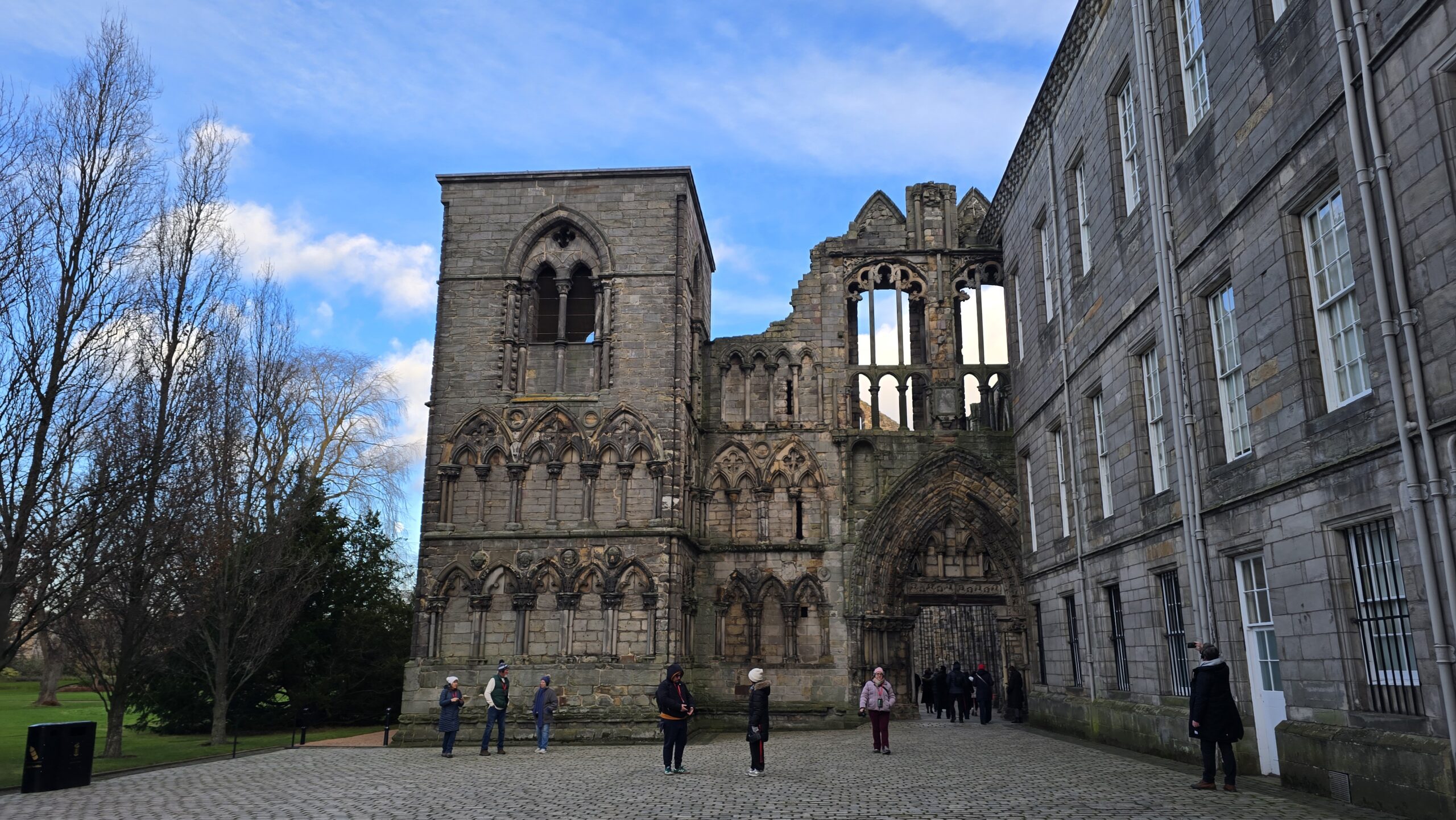 Am frühen Nachmittag treffen wir uns in der Lobby, laufen zur Haltestelle und fahren gemeinsam mit dem Bus zum Palace of Holyrood House. Rasch sind die Tickets geholt und nach der obligatorischen Taschenkontrolle erhalten wir unsere Audio-Guides, die uns durch den Palast führen. Wir sehen die Ruinen der alten Abtei, den großzügigen Innenhof und schlendern durch die Gemächer. Natürlich wollen alle den Raum sehen, in dem der Privatsekretär von Maria, Queen of Scots, mit 56 Messerstichen vor ihren Augen erstochen wurde. Seine Blut soll immer noch auf dem Boden zu sehen sein…Interessant auch der Schmuck mit dem Herz- dem Wappen der Familie. Und so schlendern wir individuell durch den Holyrood Palace- benannt nach dem Heiligen Kreuz- Holy Rood.